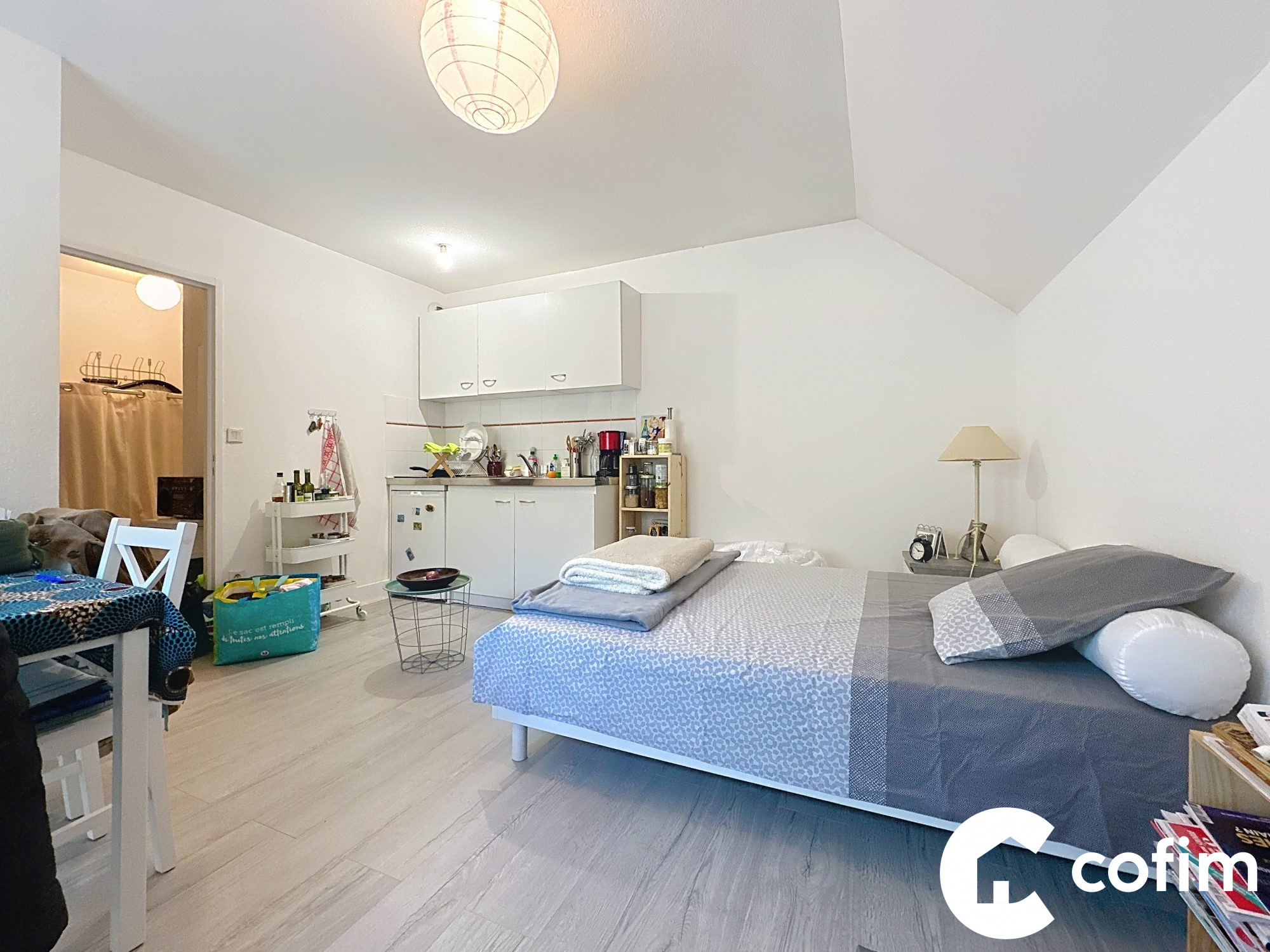 LOURDES SANCTUAIRES - Agréable studio loué de 23 m2 avec balcon offrant une vue dégagée. Il dispose d'une entrée avec placard, une pièce de vie avec cuisine aménagée et équipée ainsi qu'une salle de bain avec wc. Loyer annuel : 2 000 EUR