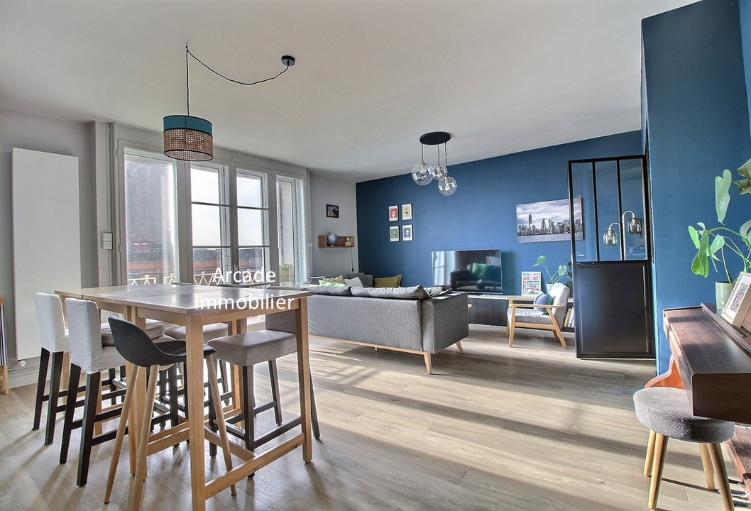 T4 Résidence de France - Exclusivité - Résidence de France - Appartement T4 de 100.73m2 en rez-de-chaussée surélevé comprenant : entrée, séjour salon de 24.91 m2, cuisine américaine aménagée équipée, 3 chambres, 2 salles d'eau entièrement rénovées, toile...