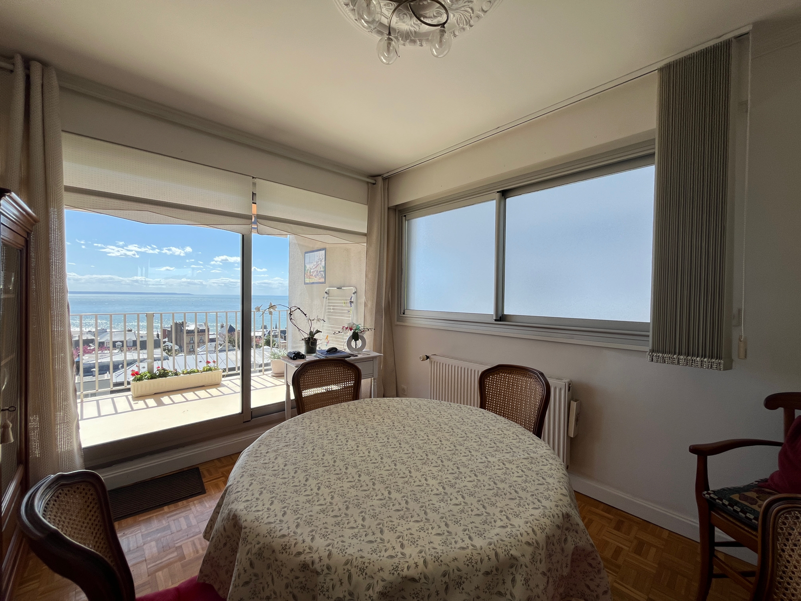 Une pièce de vie lumineuse avec parquet et accès aux balcons
