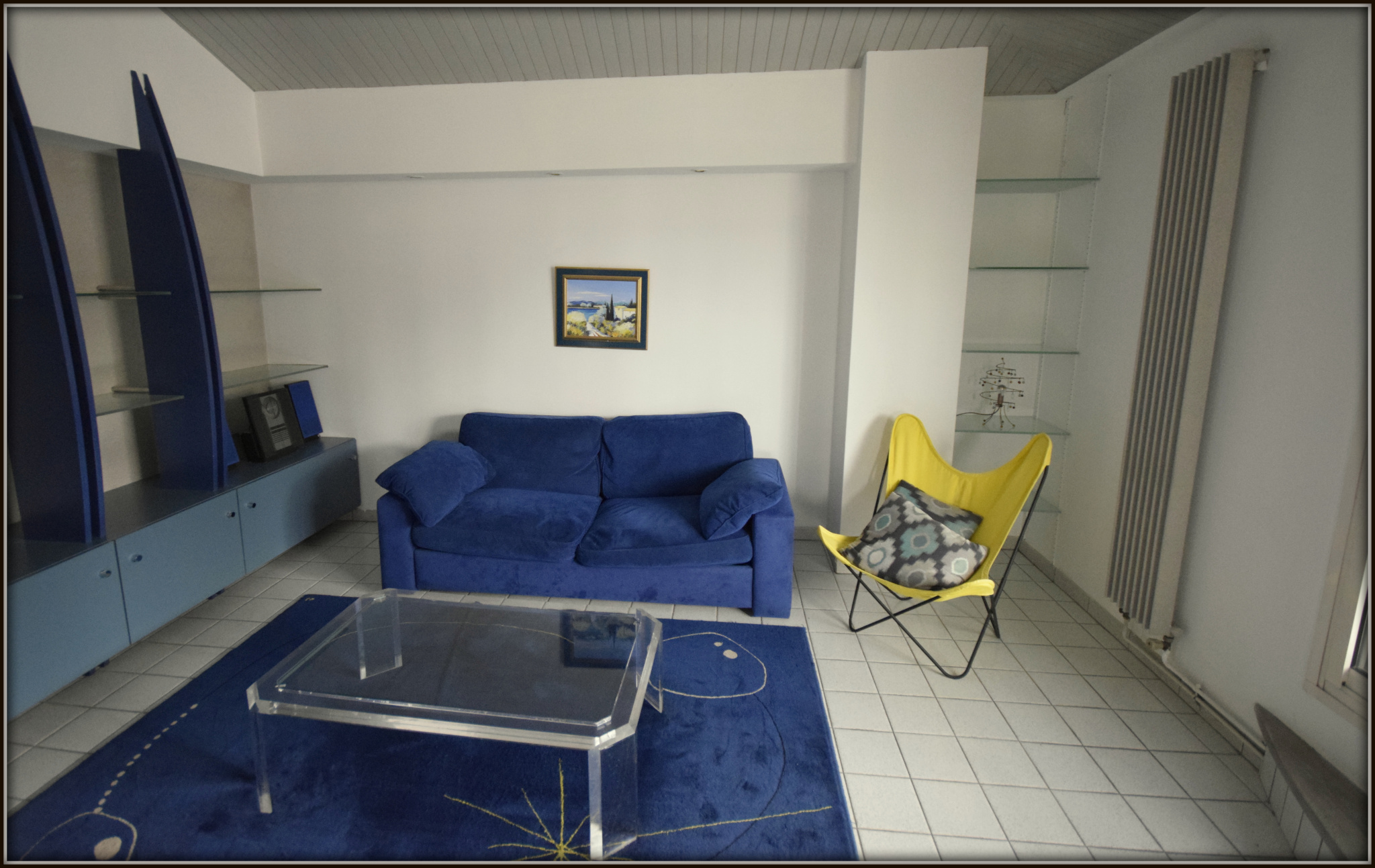 Grande pièce de vie donnant sur un grand balcon filant,
