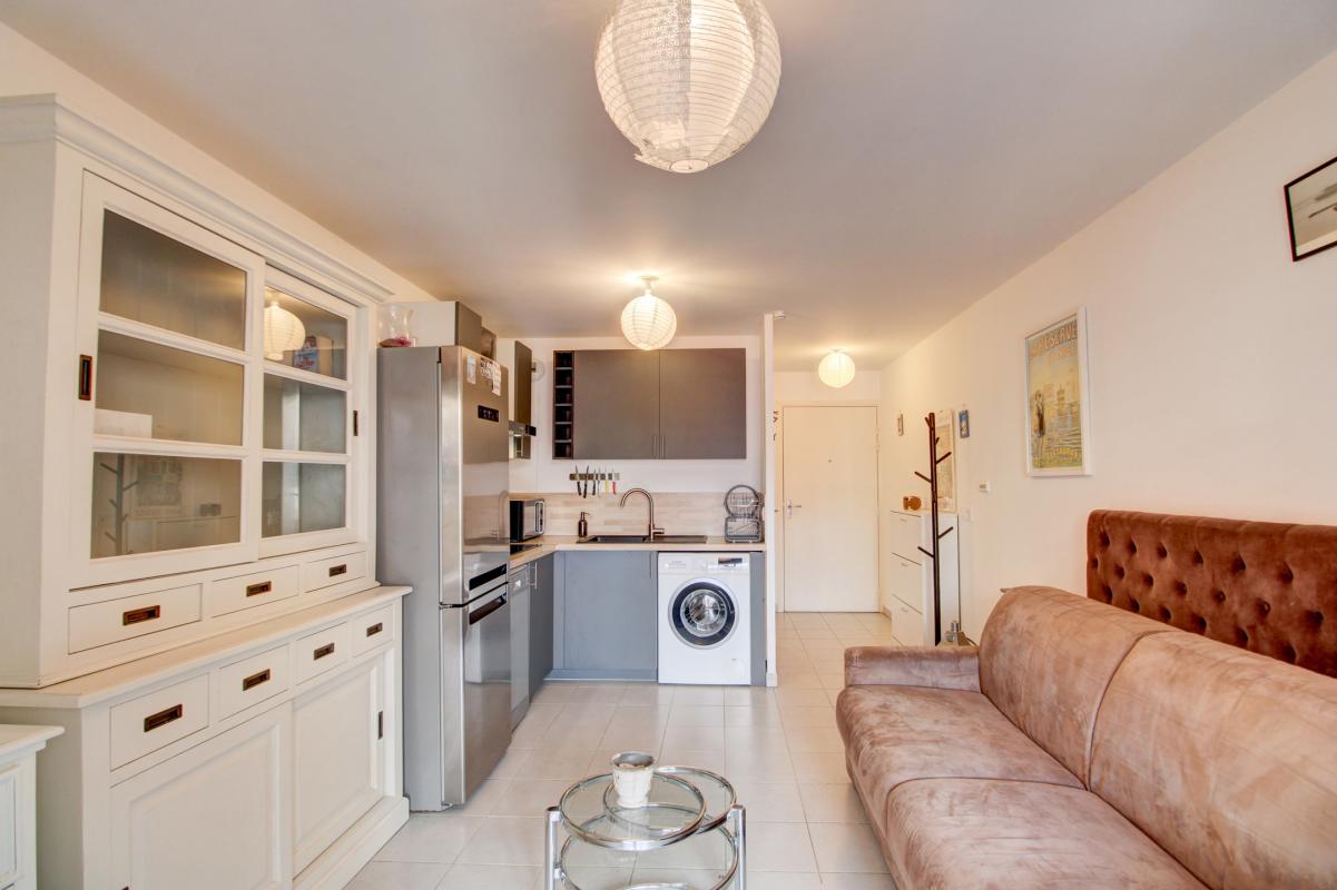 Appartement coquet de type T2 vendu meublé, d'une superficie au sol de 45,79 m2 et de 32,73 m2 ( loi Carrez ), composé d'une entrée avec placard, d'un séjour, d'une cuisine équipée, d'une chambre avec placard et d'une salle de bai...