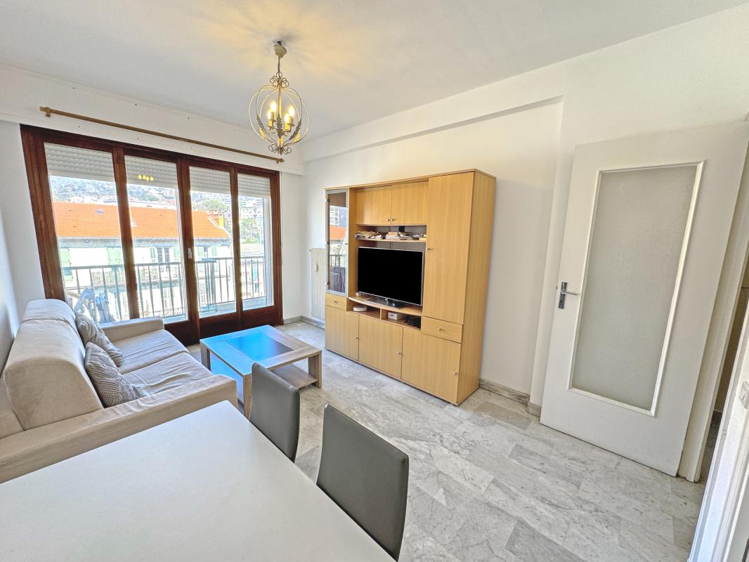 Rue Beaumont : dans bel immeuble Niçois, appartement 2 pièces 29.75m², comprenant entrée, séjour-cuisine, chambre avec salle d'eau, WC séparé, état impeccable, exposé sud.