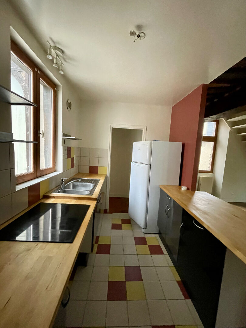 Dans petite copropriété, duplex T2 bis composé d'une entrée avec placard, séjour avec parquet et cheminée, cuisine ouverte A/E.