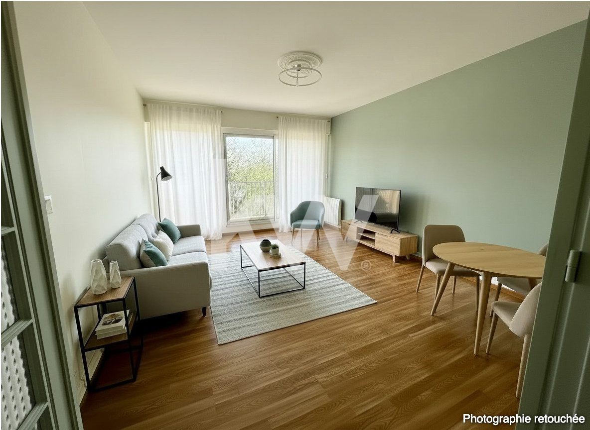 Appartement quatre pièces lumineux de 67 m² avec un balcon.