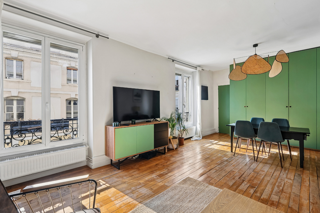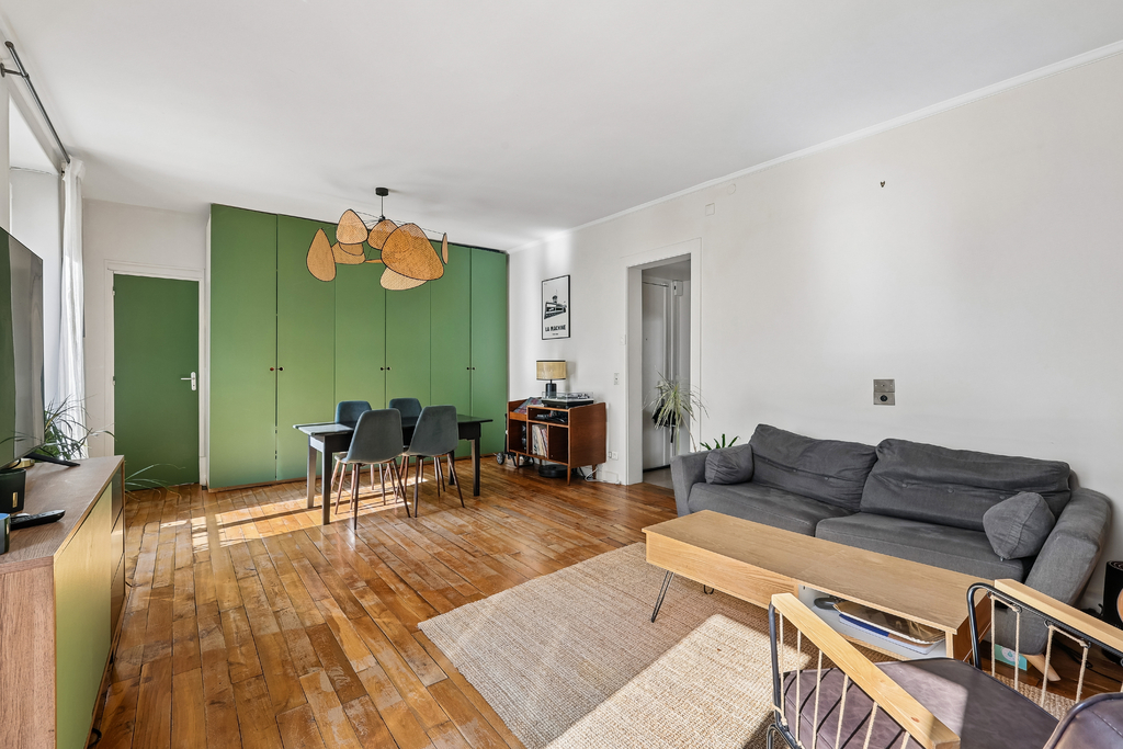 Appartement traversant et lumineux, au 3e étage.?Pièce de vie sur rue avec trois fenêtres.?Plan fonctionnel, sans perte d'espace, rangements existants et offre un potentiel de rénovation.