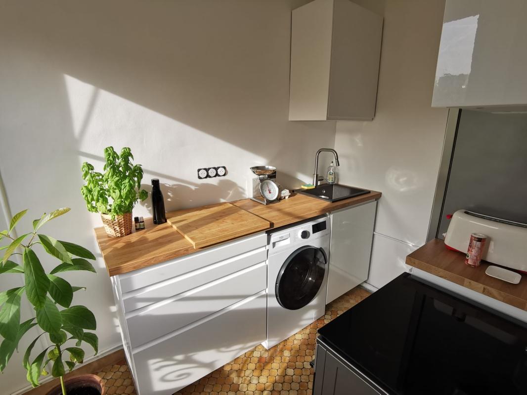 Située au coeur du 11ème arrondissement au 3ème étage d'un immeuble en pierre de Paris, ce T2 de 28 m² exposé plein Sud séduit immédiatement par son charme rustique et ses matériaux naturels soigneuse...