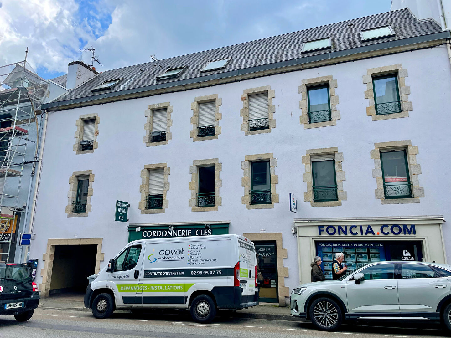 Nouvelle Exclusivité, Quimper centre ville, au coeur des rues piétonnes, au dernier étage en duplex d'un bel immeuble de caractère, découvrez cet appartement T4, à rénover, offrant un hall, séjour salon, cuisine, 3 chambres, sdb et 2 wc. Cave. Une belle ...