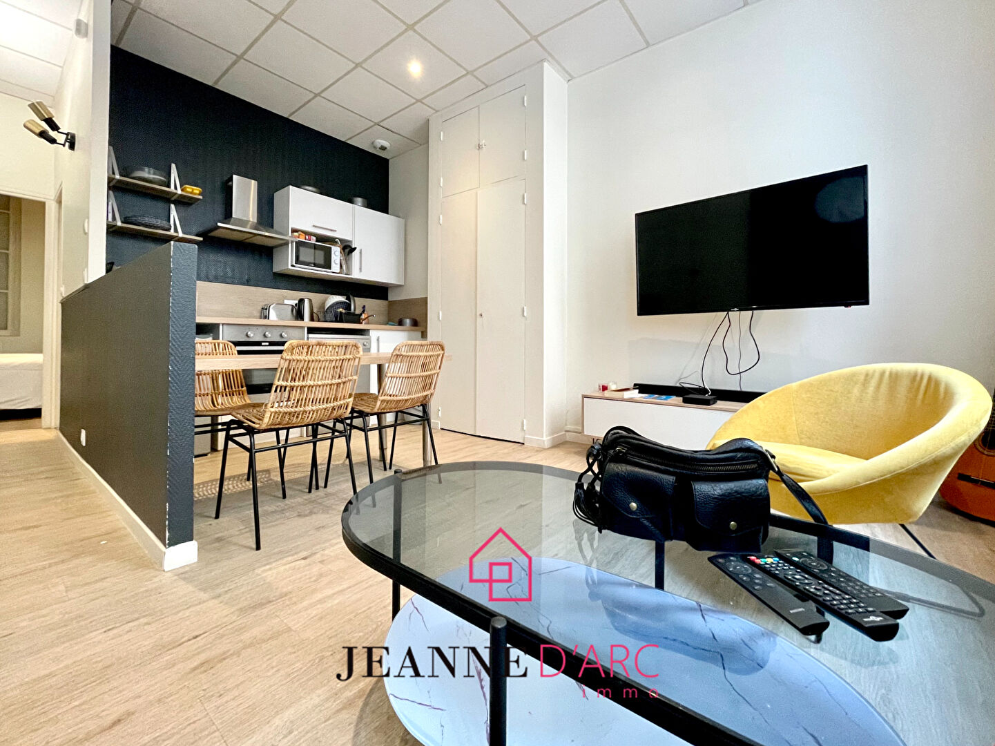 Jeanne d'Arc Immo vous propose à la vente un beau T1bis en duplex de 41.20m² au sol dont 36.60m² Carrez, à proximité de la FAC de médecine, au 2ème étage sur cour, comprenant cuisine ouverte sur un beau séjour, chambre en mezzanine, salle d'eau, WC.<...