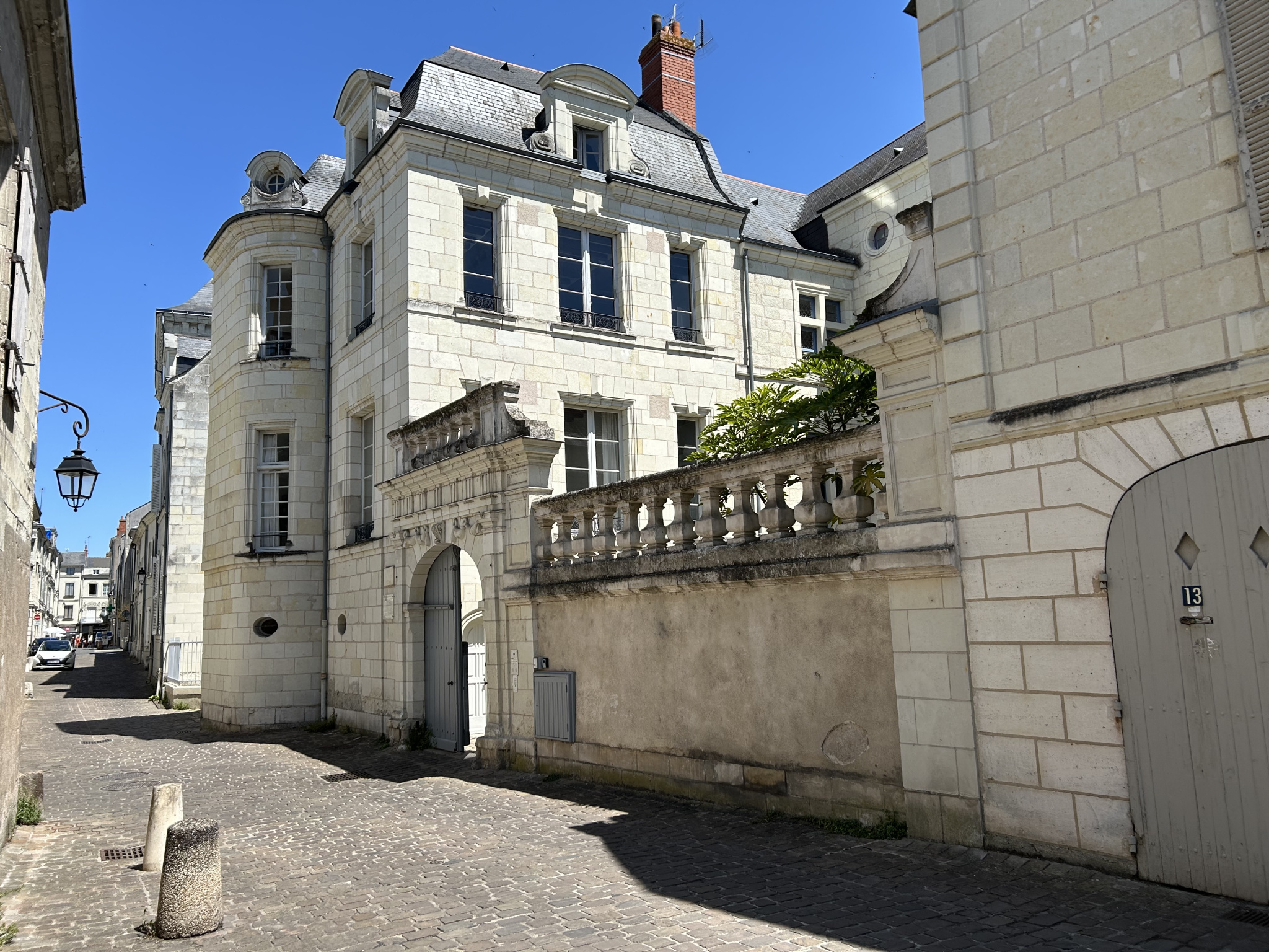 Au cœur du centre-ville historique de Saumur (secteur sauvegardé), sur les bords de Loire. Dans un hôtel particulier de style traditionnel en pierre de tuffeau datant du XVIIe siècle avec cour intérieure devant et jardin derrière.