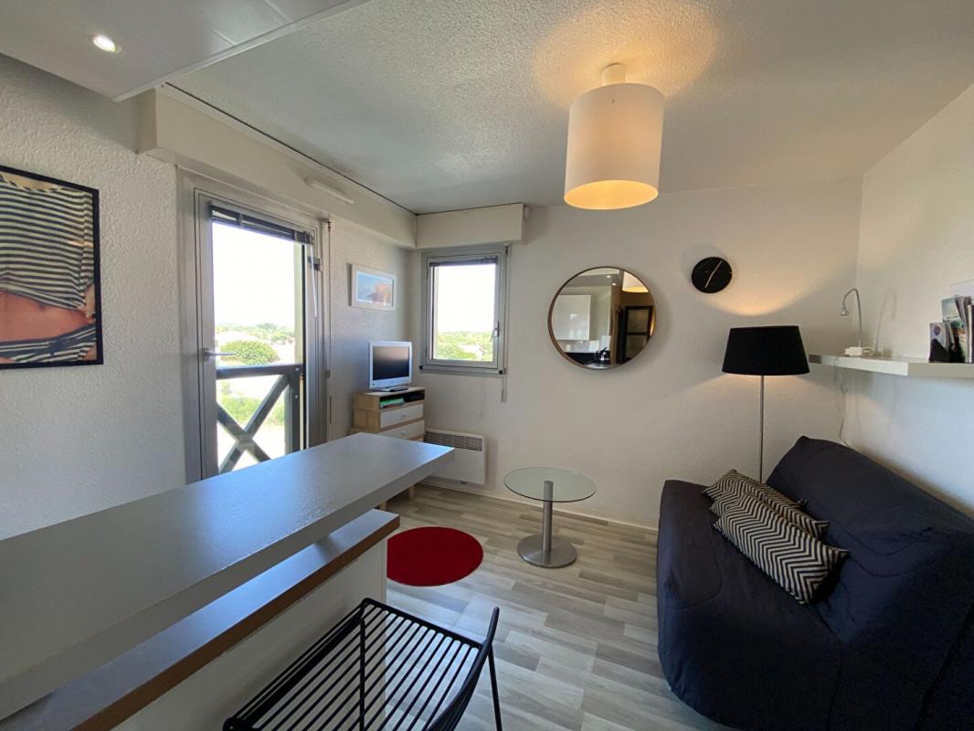 Hossegor plage Sud proche de la Centrale résidence du Point d 'Or superbe petit studio vendu meublé comprenant une pièce principale de séjour avec cuisine aménagée et équipée, une salle de bains, placard avec arrivée d'eau pour la machine à laver. R...