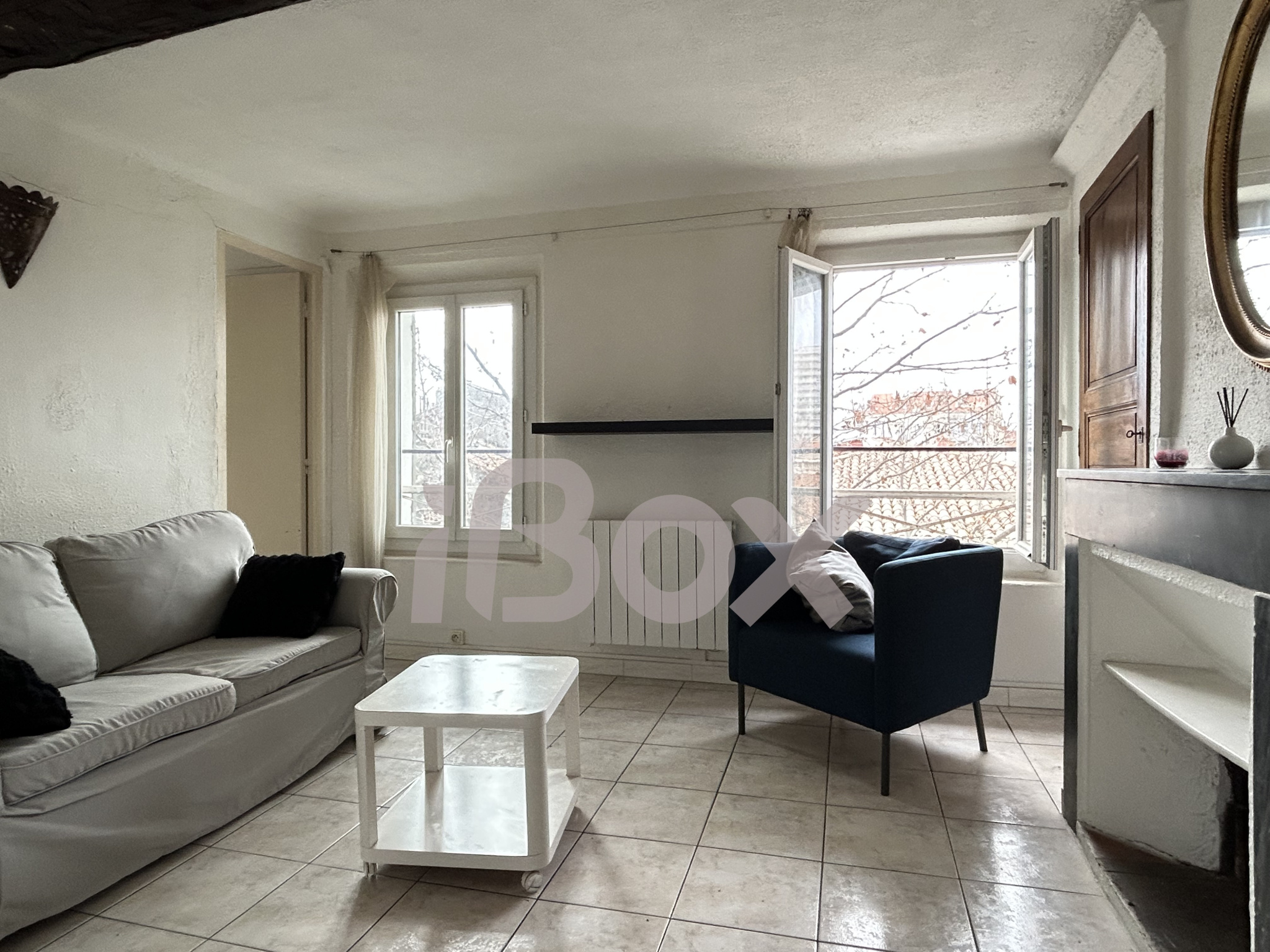 Beau séjour très lumineux, cuisine équipée, douche à l'italienne, bal...