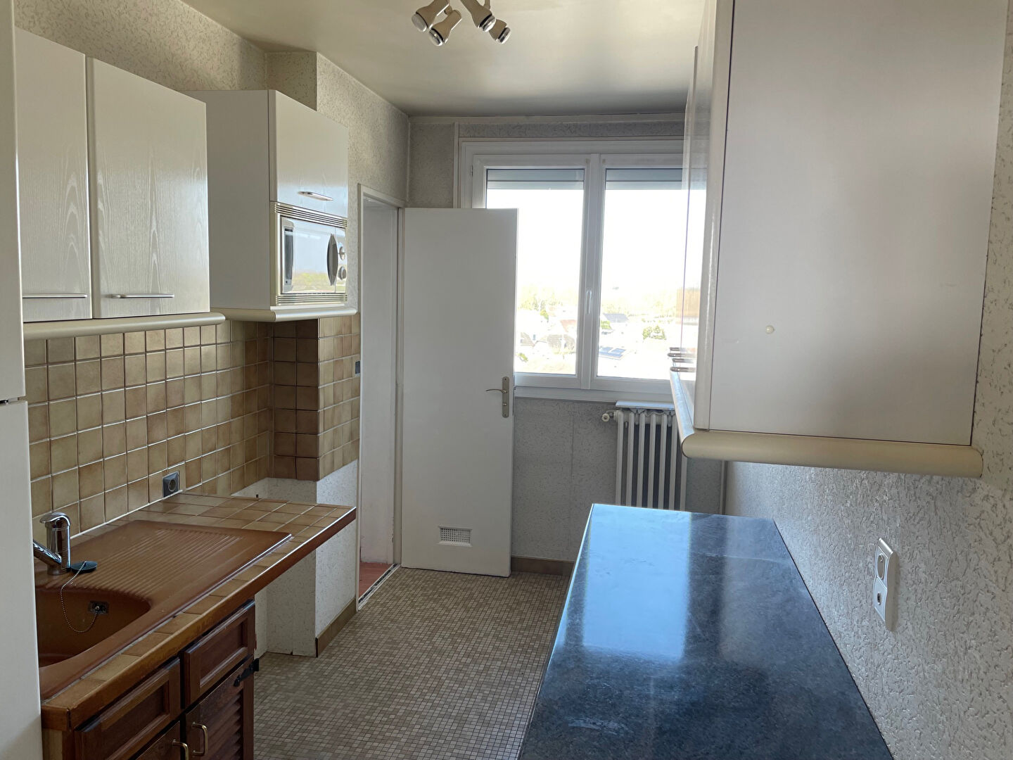 Appartement 3 pièces traversant , comprenant : entrée avec placard , salon - salle a manger avec balcon, dégagement , cuisine, cellier, une chambre possibilité deux, WC, salle de bains avec baignoire.