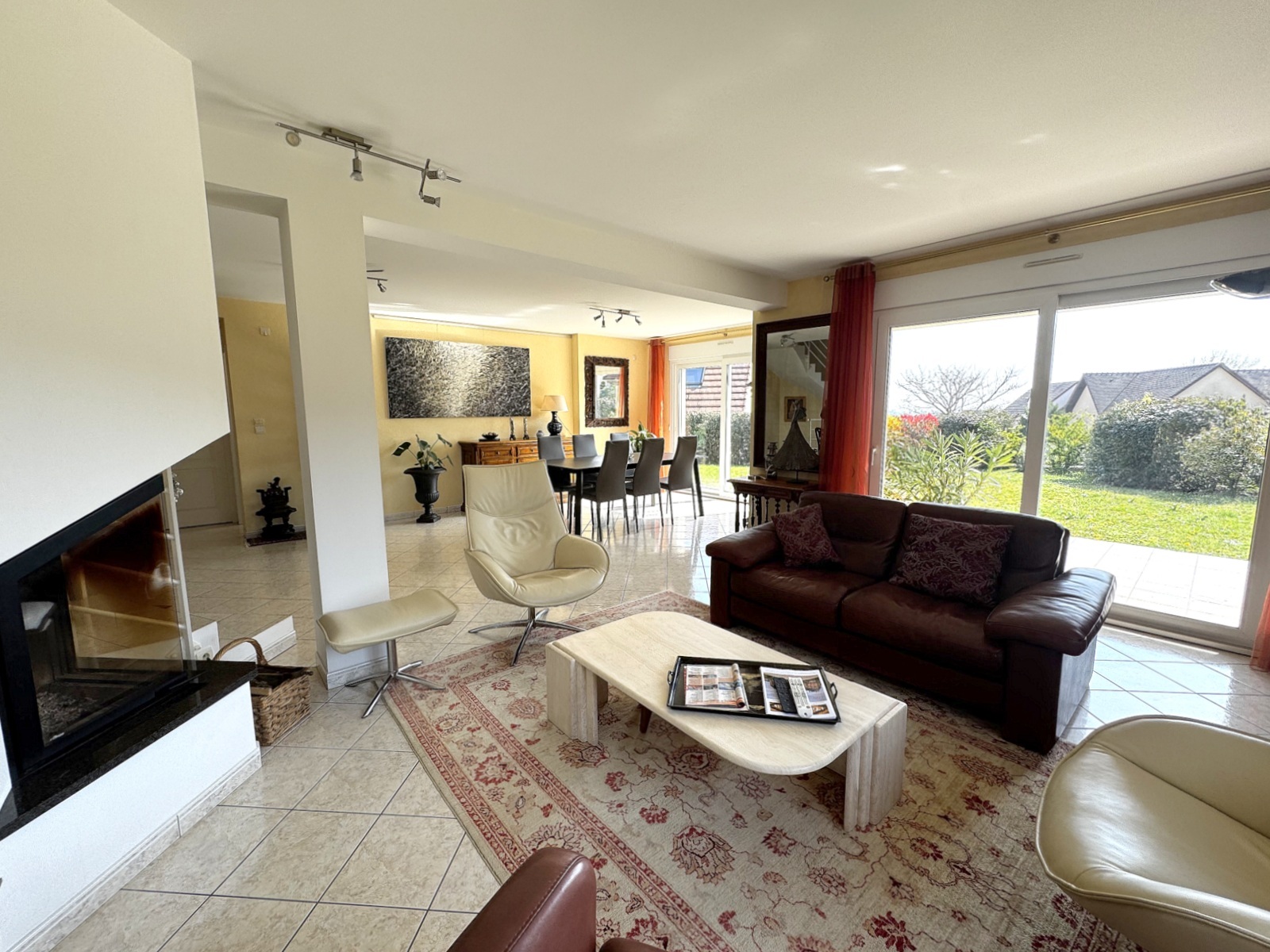 Sur les hauteurs, belle maison d'architecte. Grande pièce à vivre avec accès terrasse et jardin, quatre chambres, pièce supplémentaire pouvant faire office de bureau ou de chambre. Beau terrain clos et arboré.