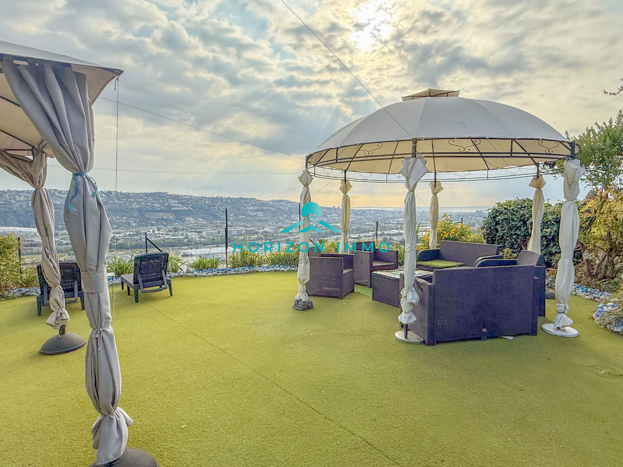 Sur les hauteurs de Saint Laurent du Var, offrant une vue dégagée sur Nice jusqu'à la Mer.