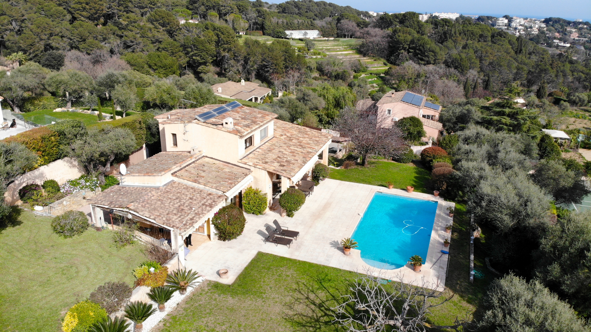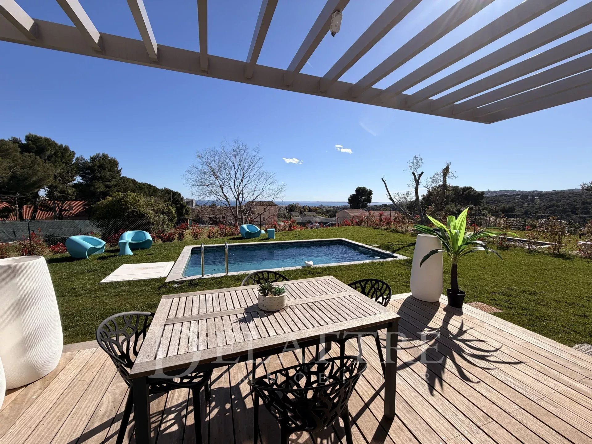 A 10 minutes des plages,à 20 minutes de Sophia,Au coeur d'un domaine fermé de standing au calme avec une très belle vue mer.