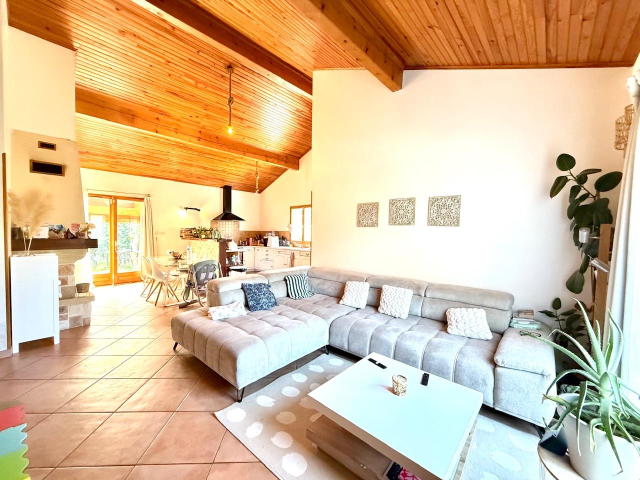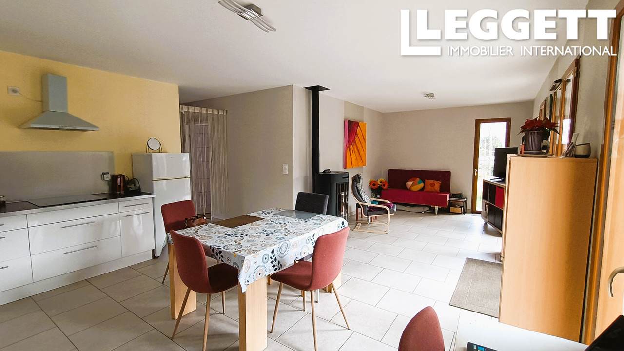 Séjour-cuisine équipée 49m2 donnant accès à une jolie terrasse avec store banne, conduit de cheminée pour poêle, placard à l'entr...