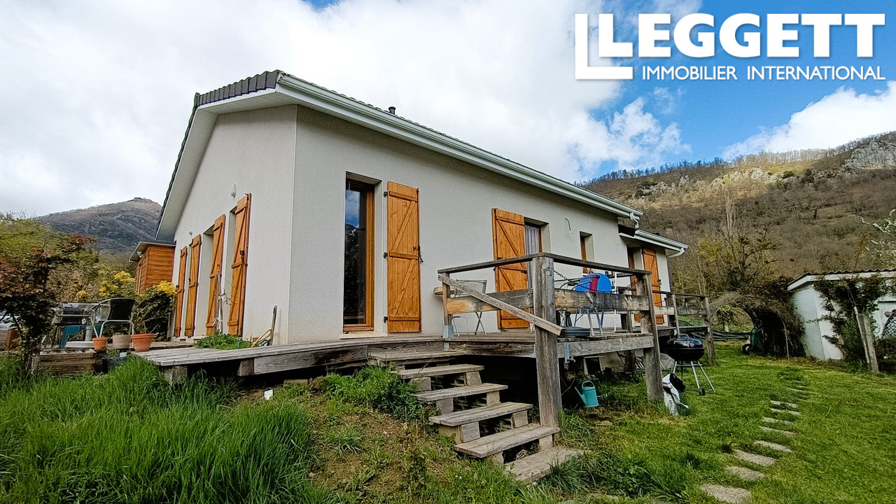 AX-LES-THERMES, Maison T4 de plain-pied de 98 m², dans un environnement naturel paisible et agréable située à 2 minutes du centre-ville d'AX-LES-THERMES. Comprenant grand séjour avec cuisine ouverte, 3 chambres avec placard, salle de d'eau avec range...
