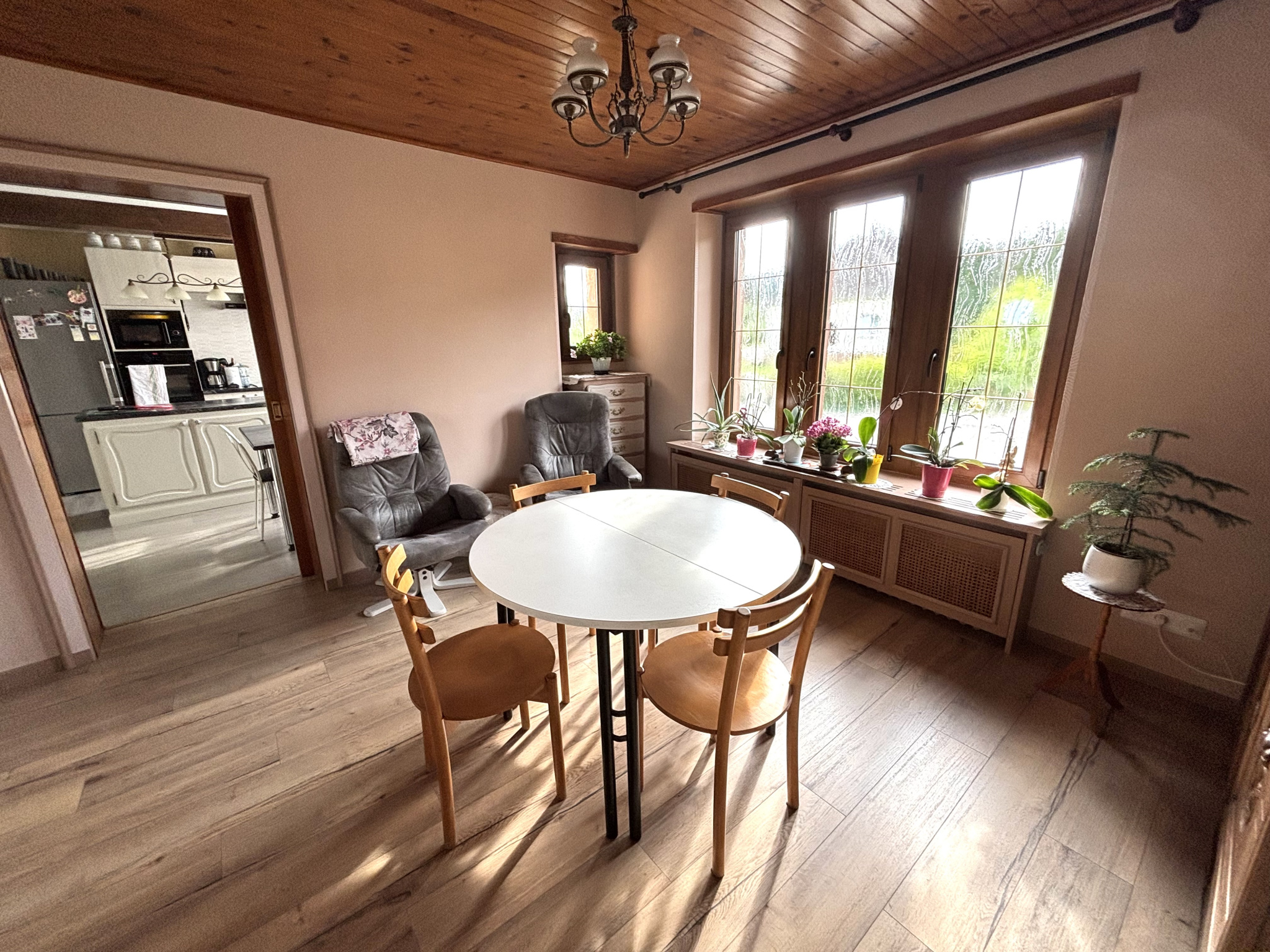 En rdc : Entrée, salon-séjour lumineux avec poêle à pellet et clim réversible, cuisine équipée ...