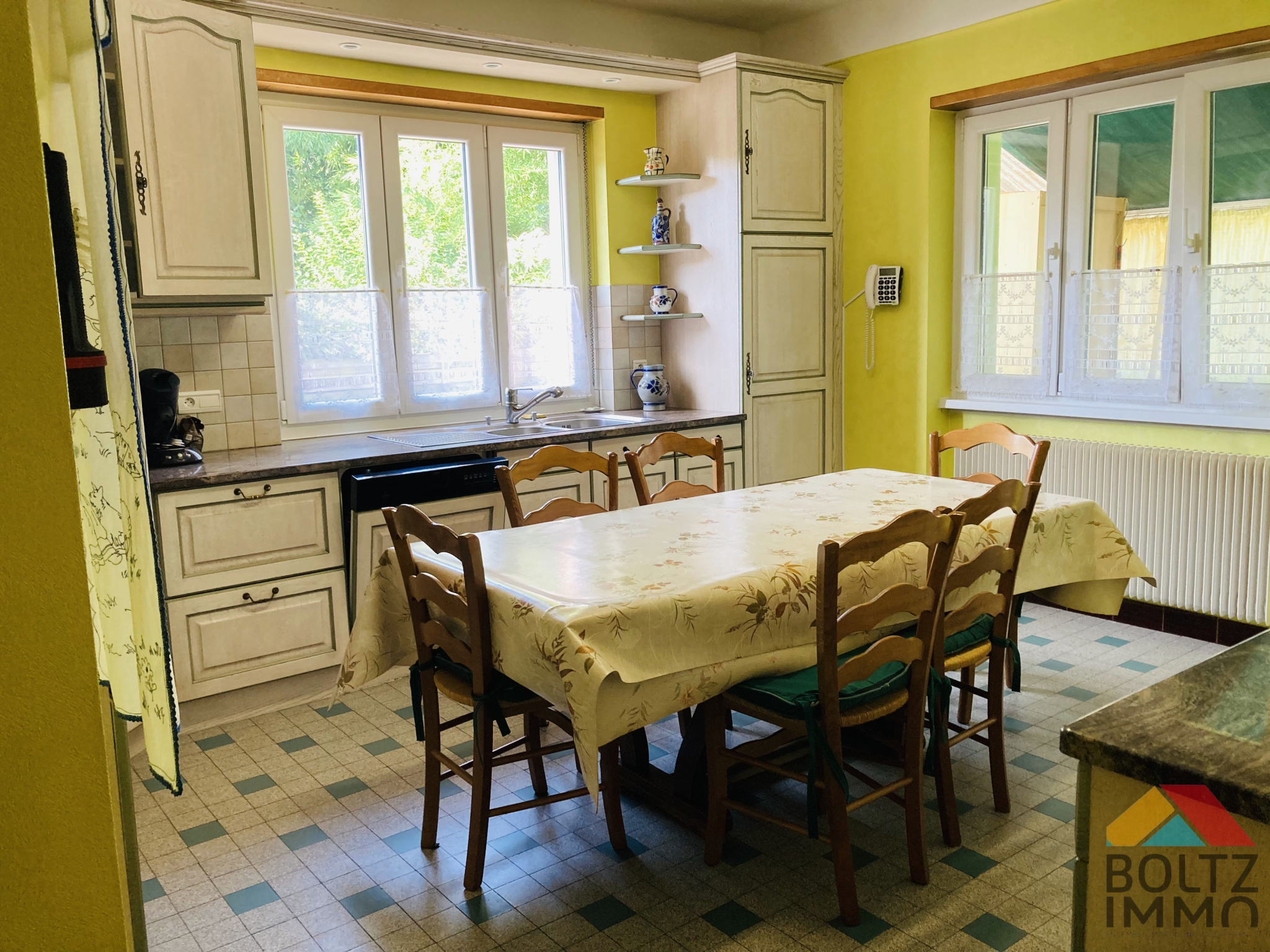 WANGENBOURG - ENGENTHAL Située en impasse venez découvrir cette belle et grande maison des années 40, de 233m² sur 18,59 ares de terrain. Elle se compose au rdc: d'une entrée, d'un débarras, d'un beau salon/séjour de 61m² avec poêle à pellet, d&...