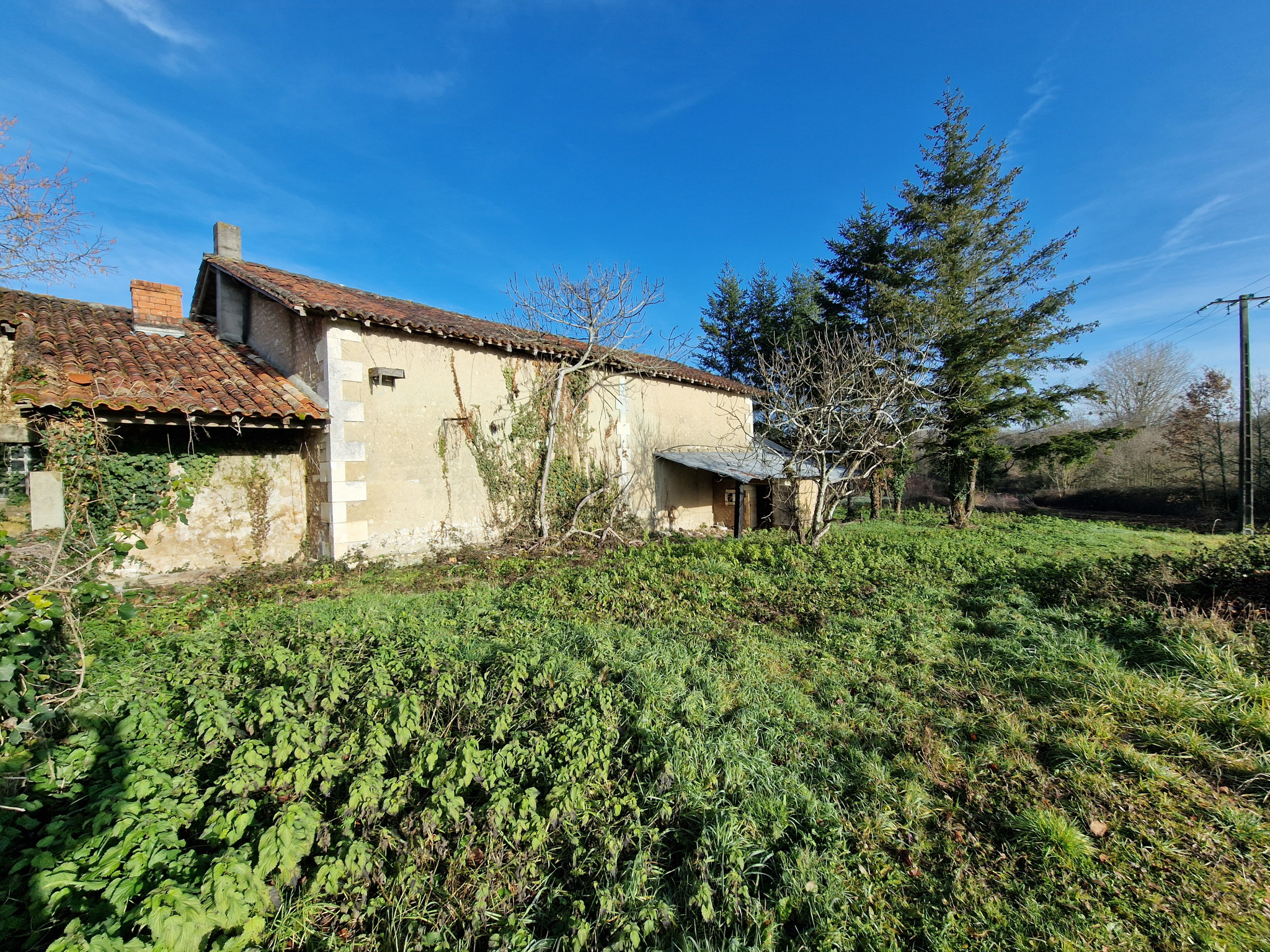 BROSSAC (16480) Située dans un environnement naturel, cette ancienne fermette à rénover avec terres et bois est idéal pour un projet agricole, équestre ou de vie à la campagne.