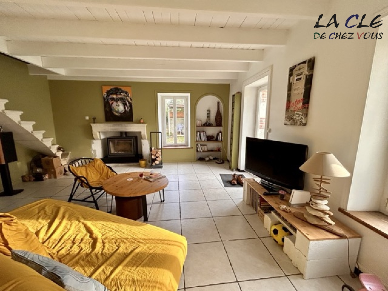 Elle se compose d'une entrée, un grand séjour avec insert, une cuisine et une pièce pouvant devenir une chambre(ancienne boutique).