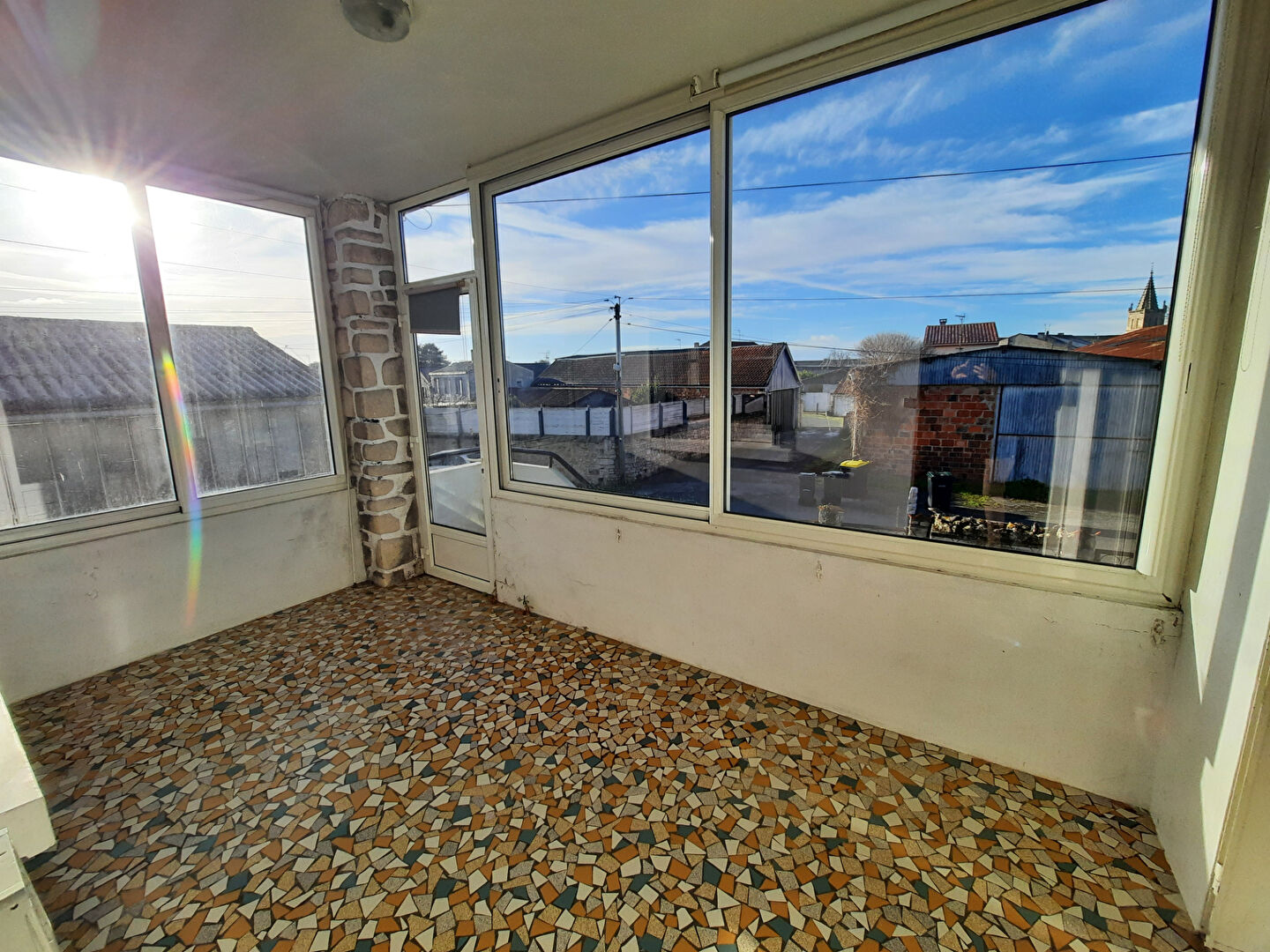 Une entrée très lumineuse grâce à la véranda bien exposée avec vue sur la ville ouvre sur u...