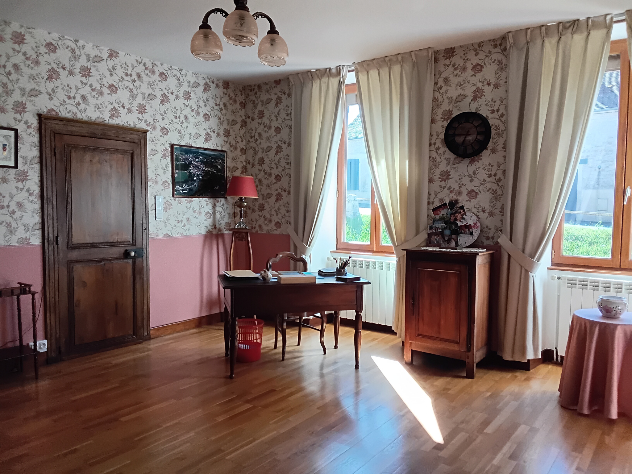 Maison de campagne pleine de charme avoisinant 155m² habitable comprenant au rez-de-chaussée: entrée, salon salle à manger, buanderie WC, ancien atelier et bureau.