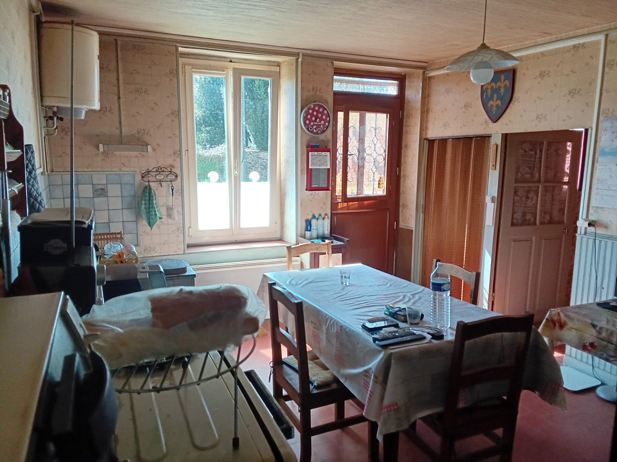 maison de 106 m2, avec une cuisine, un séjour, un salon, à l'étage une chambre palière, une chambre et un bureau. La maison dispose de fenêtres en double vitrage PVC, radiateur électrique, et d'une cheminée ouverte. L'assainissement est individu...