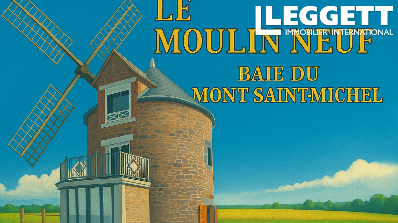 A40513HL35 - Face à l'immensité de la baie du Mont St-Michel, le Moulin Neuf dresse sa silhouette de pierre, immuable et sereine.