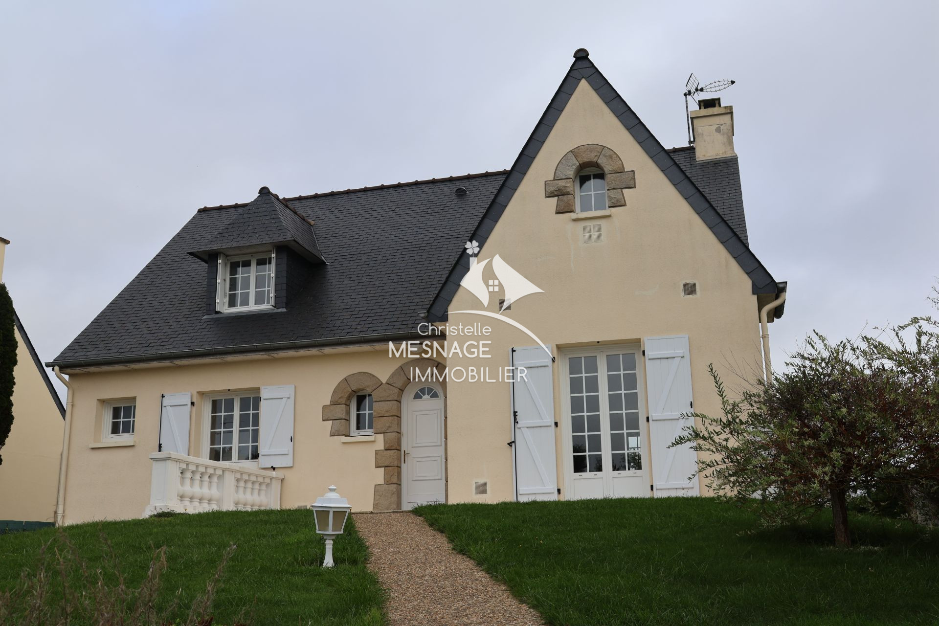 A vendre chez Christelle Mesnage Immobilier, LANVALLAY. A 5 minutes de Dinan, belle maison Néo-bretonne de 150m² habitables offrant : une entrée, un séjour avec une cheminée insert et un accès au jardin ainsi qu'à la terrasse, une cuisine équipée avec un ...
