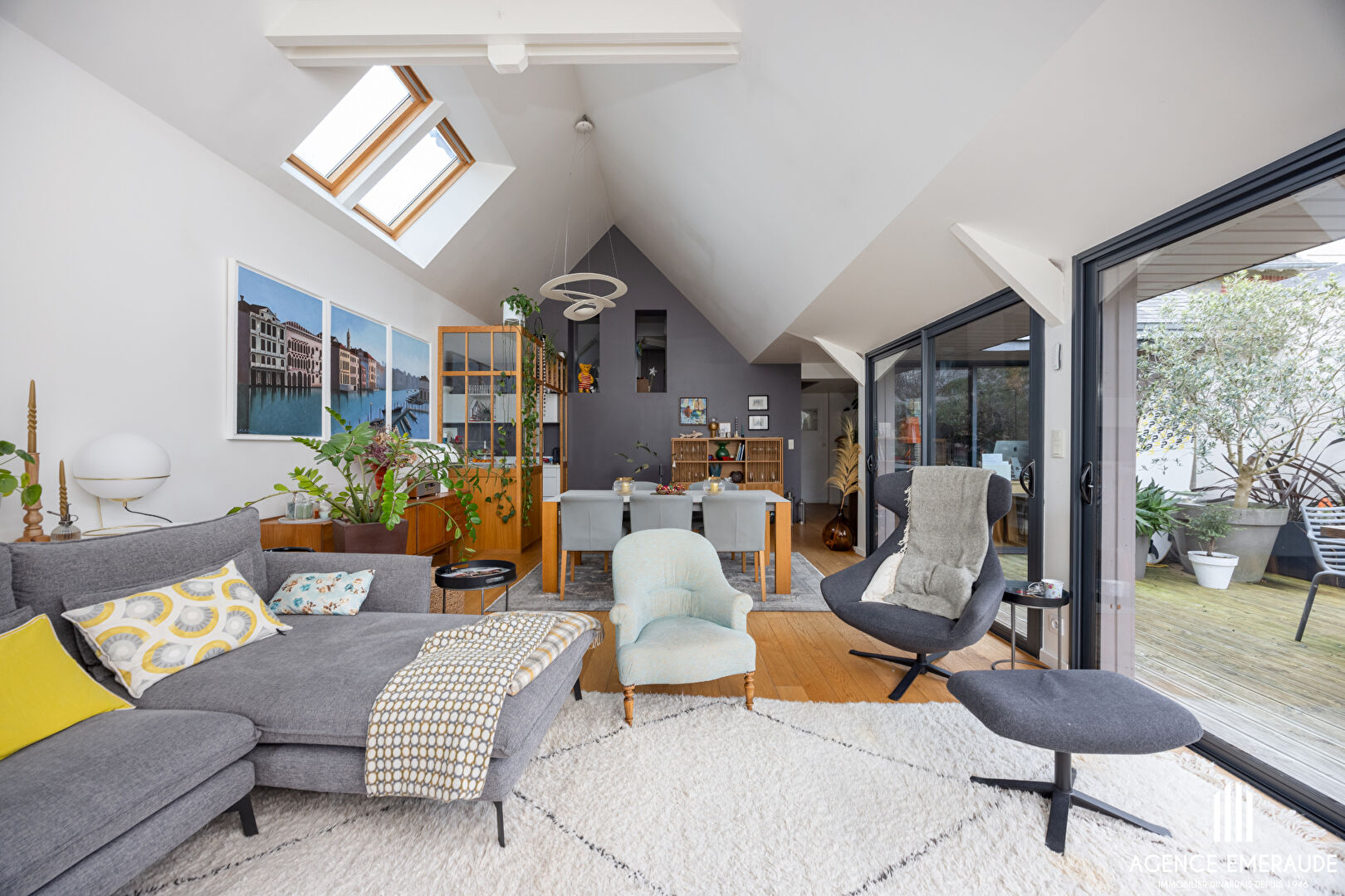A vendre DINARD hyper centre, belle maison ancienne et son extension moderne ouverte sur le jardin. Située en plein centre de Dinard, à proximité immédiate de la place du marché et de la plage de l'écluse
