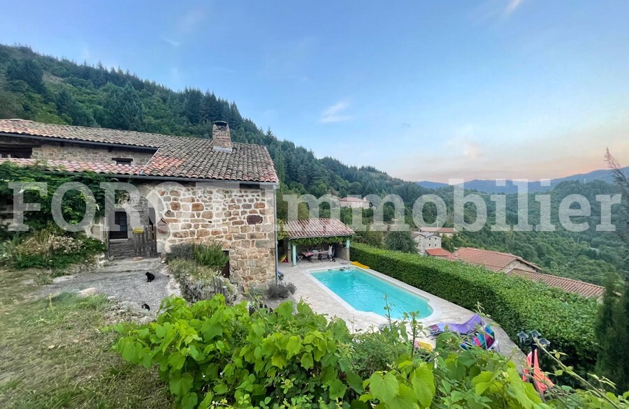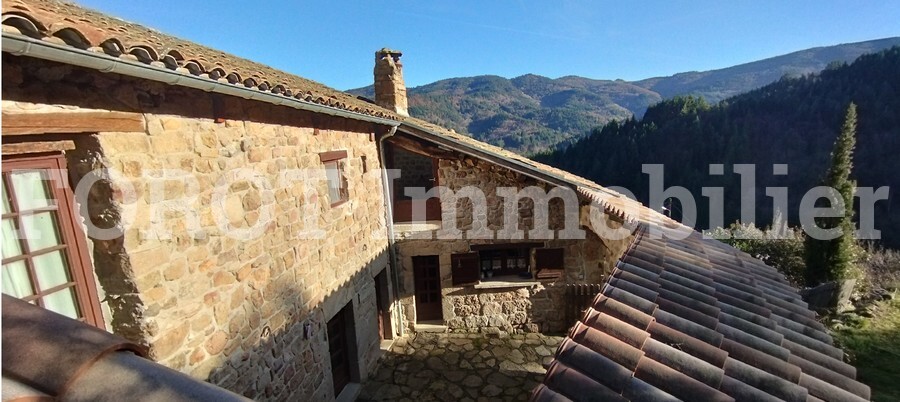 Ardèche, vallée de la dorne : En exclusivité, maison indépendante en pierre 5 pièces de 113 m2 dont un beau séjour de 34 m2 avec cheminée et une cuisine aménagée et ouverte sur une belle terrasse avec vue. 3 chambres et un bureau à l'étage. 2 WC, 1 salle ...