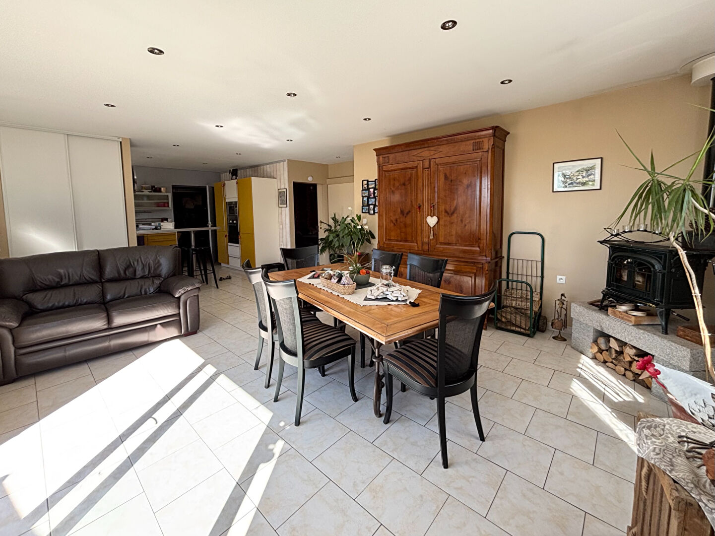 Au RDCH : Cuisine équipée semi-ouverte sur espace de vie avec cheminée insert, dégagement, 2 chambres, bureau, SDB / SDD, wc. Vaste terrasse.