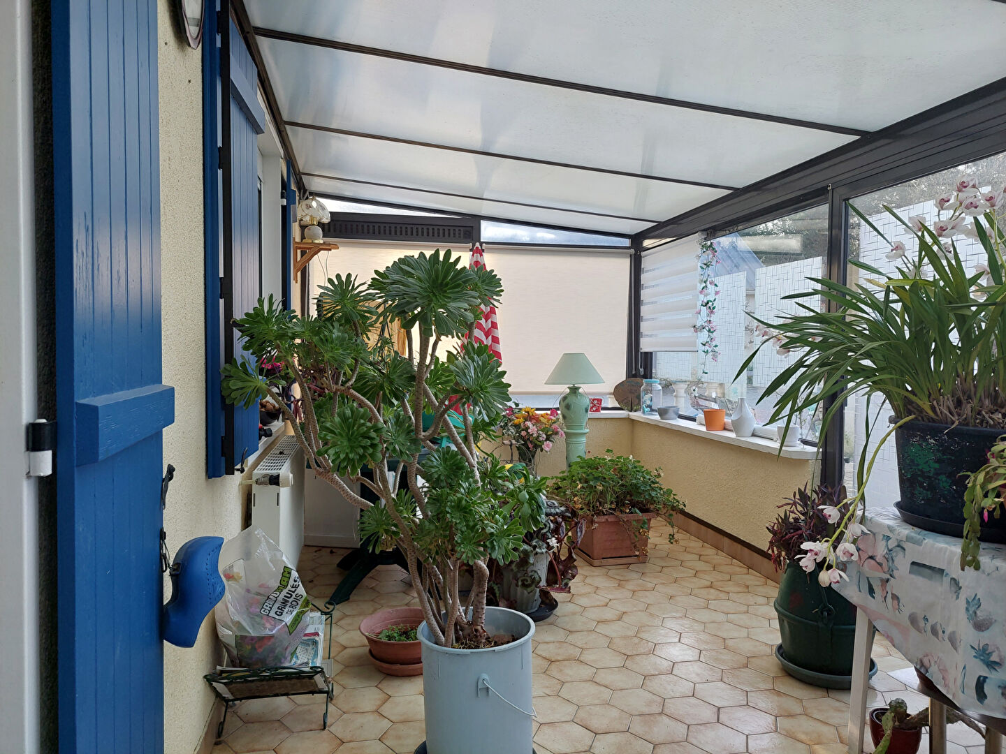 Elle comprenant : Une entrée avec placards, une séjour avec cheminée insert, une cuisine aménagée et équipée, une véranda, un couloir desservant trois chambre...