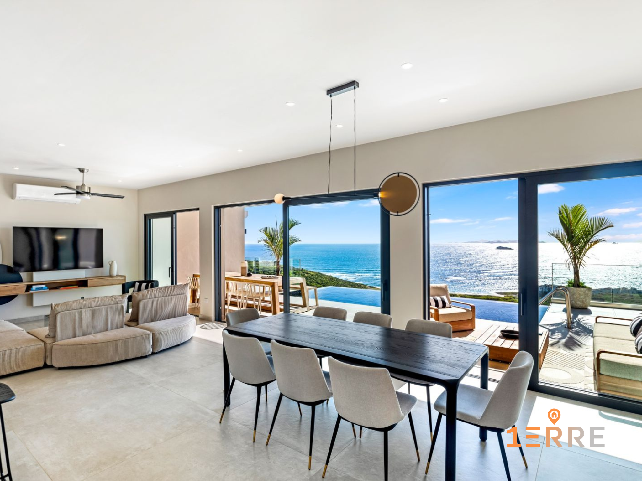 Vivez le style Saint-Martin (côté néerlandais) : Une Villa Moderne, entièrement meublée, aux vues mer panoramiques sur St Barth avec vue directe sur St-Barth.