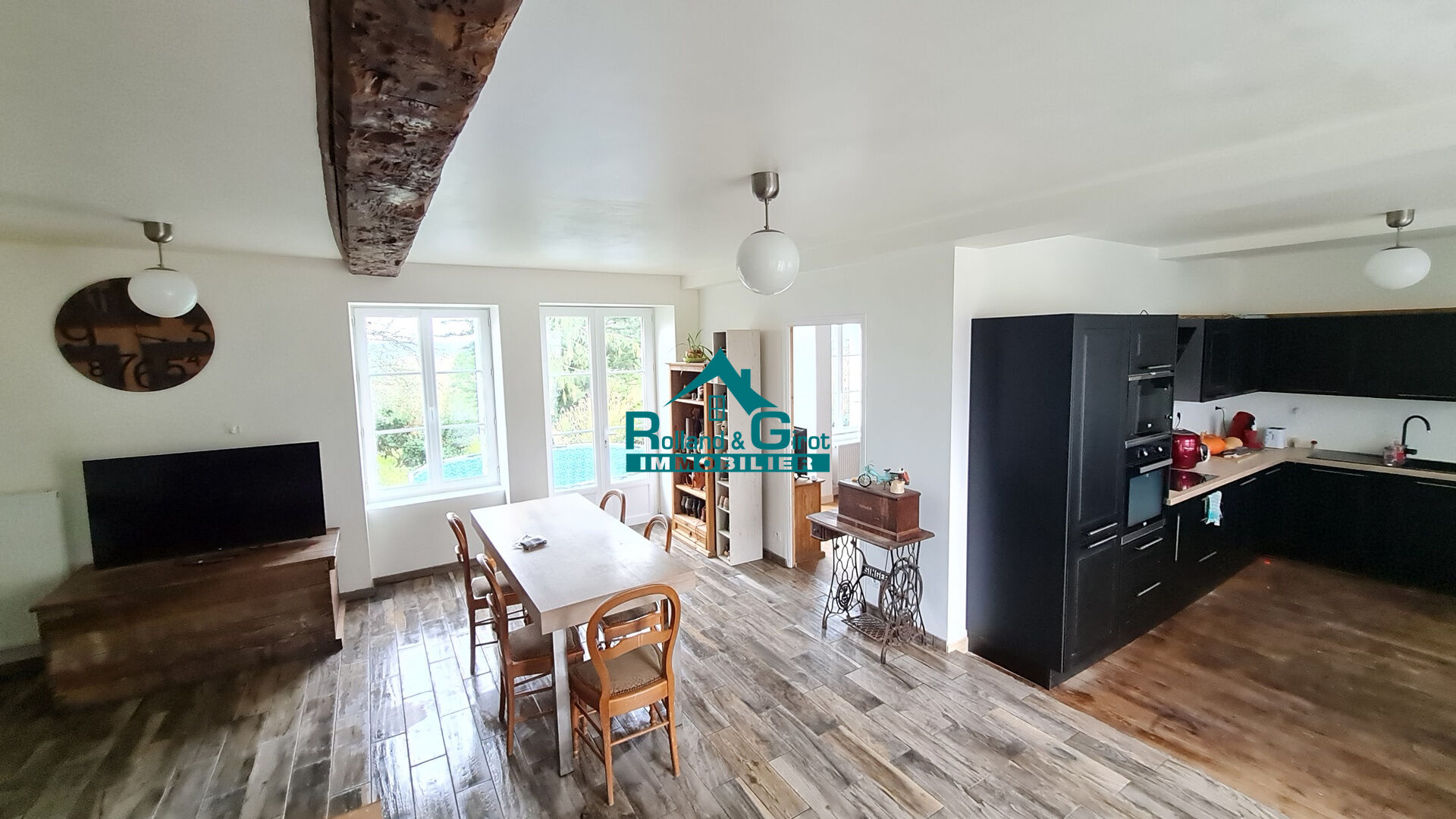 Cette charmante maison comprenant de beaux volumes et de belles hauteurs. Elle offre au rez-de-chaussée, une pièce de vie avec cuisine ouverte et une cheminée, un dégagement ainsi qu'un WC. À l'étage, le p...
