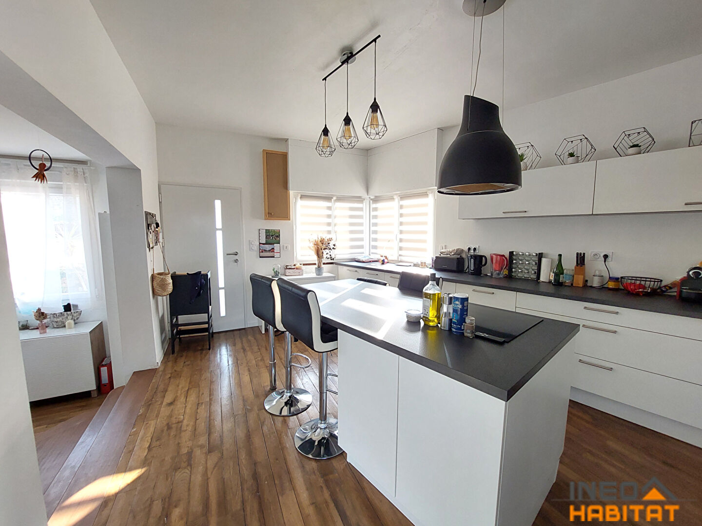 Au rez-de-chaussée : un vaste séjour salon lumineux ouvert sur cuisine aménagée équipée, un cellier, une buanderie, un wc<...