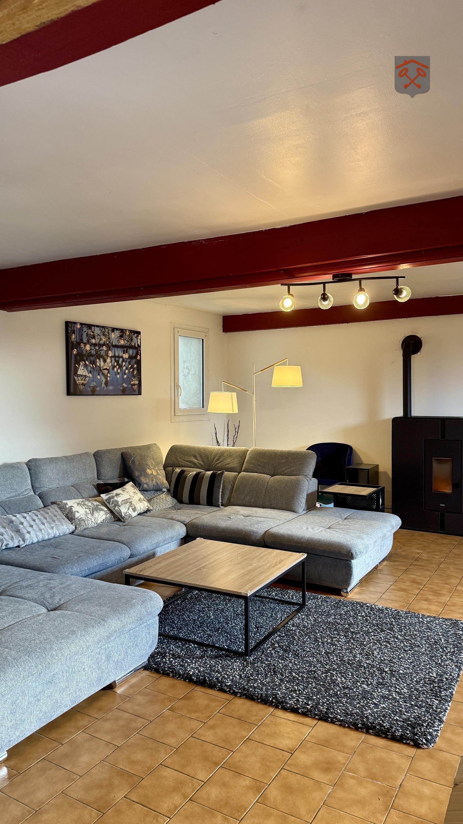 Entrée,vaste Cuisine aménagée poêle à granulés, Séjour-Salon poêle à granulés, 2 chambres, salle d'eau wc. Etage : 3 chambres dont 1 avec dressing, salle d'eau. Chauffage central chaudière à granulés -<...
