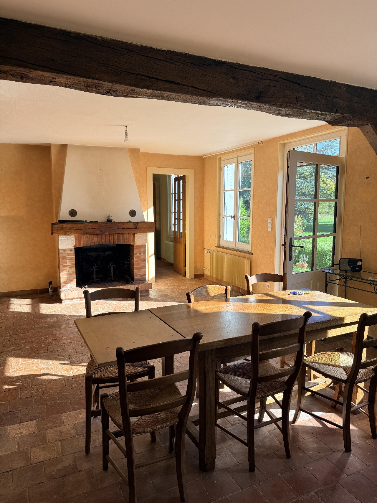 rez-de-chaussée : entrée, vaste séjour/slon avec cheminée, cuisine aménagée et équipée, salle de bains, WC.
