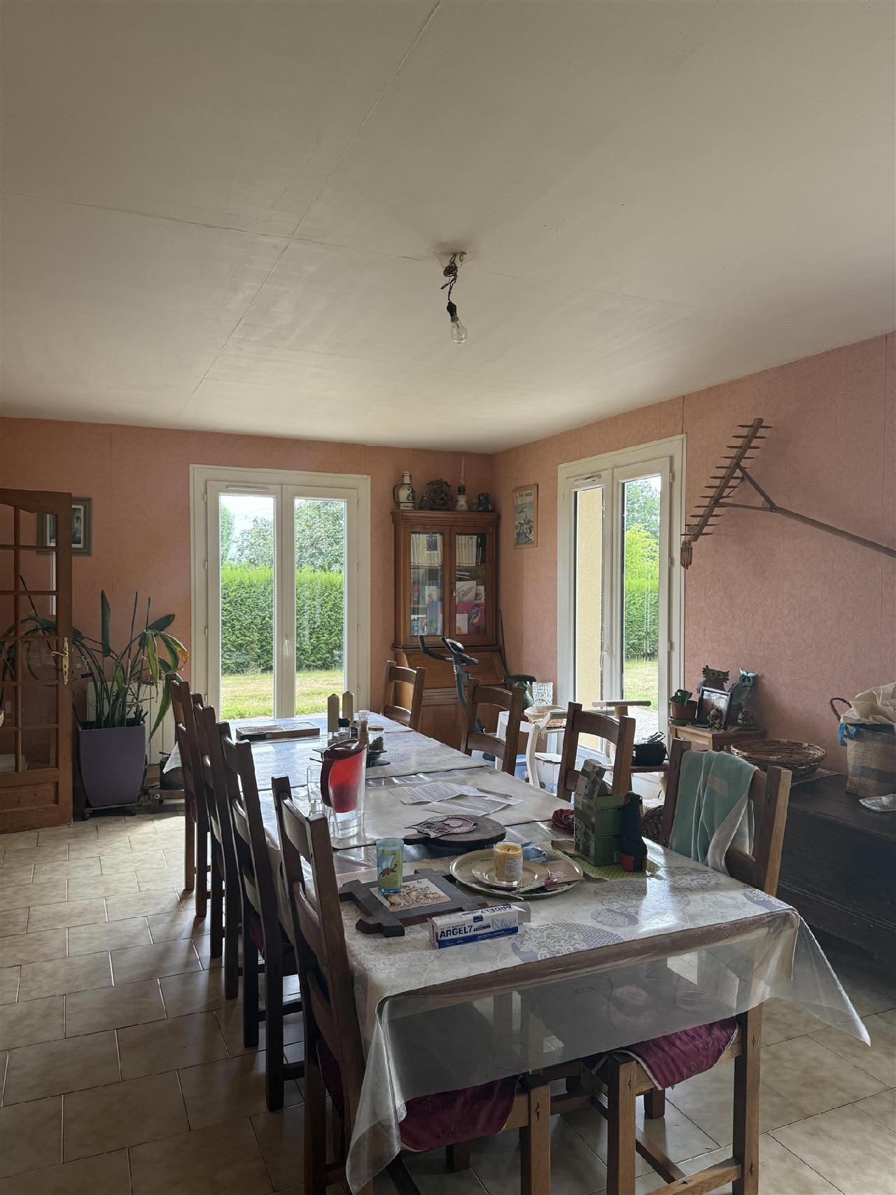 Véranda d'entrée, salle à manger avec poêle à bois, salon avec cheminée utilisé actuellement en chambre , chambre...