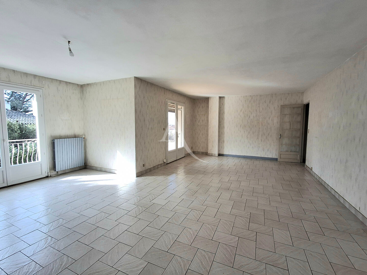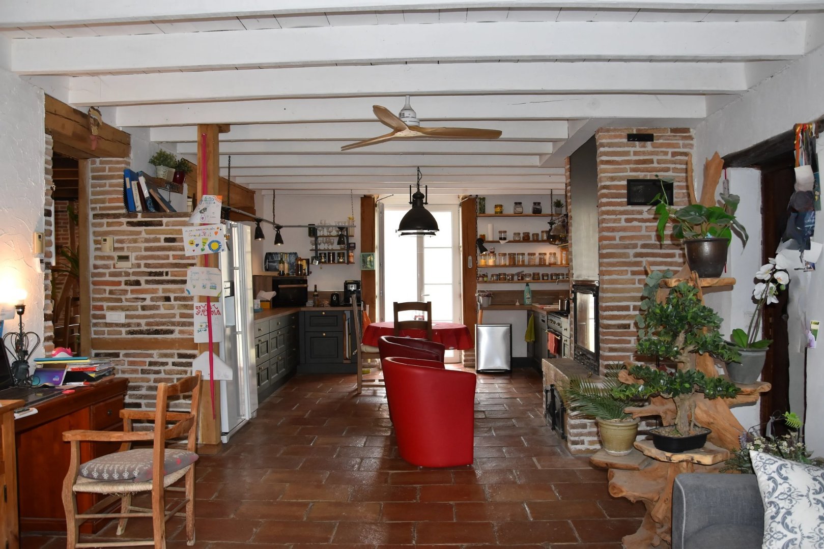 Un hall d'entrée s'ouvre sur une vaste pièce à vivre traversante, déplafonnée, c...