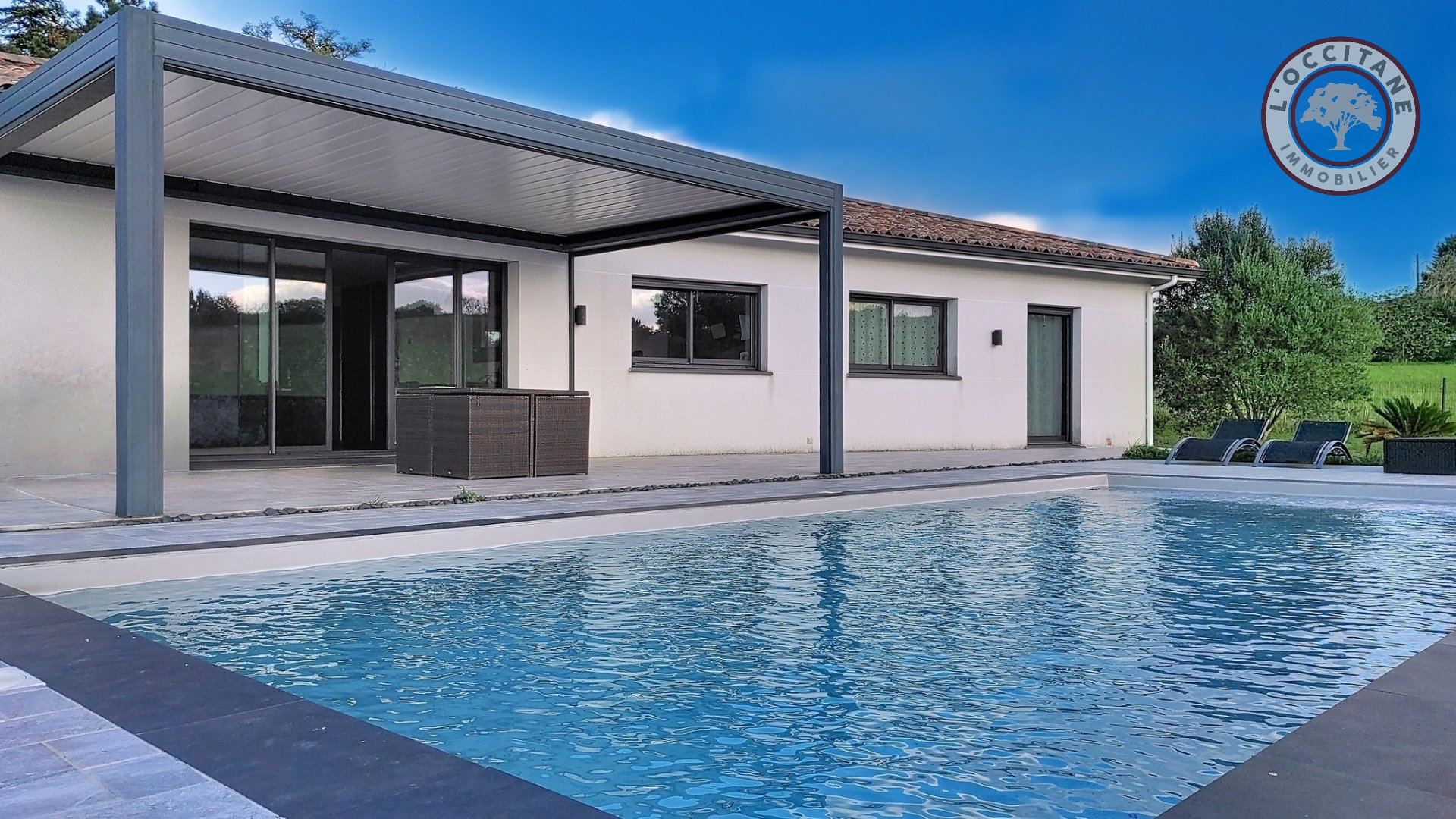 EXCLUSIVITE L'OCCITANE : Belle villa contemporaine T6 de 2014 avec une splendide vue panoramique sur la chaîne des Pyrénées
