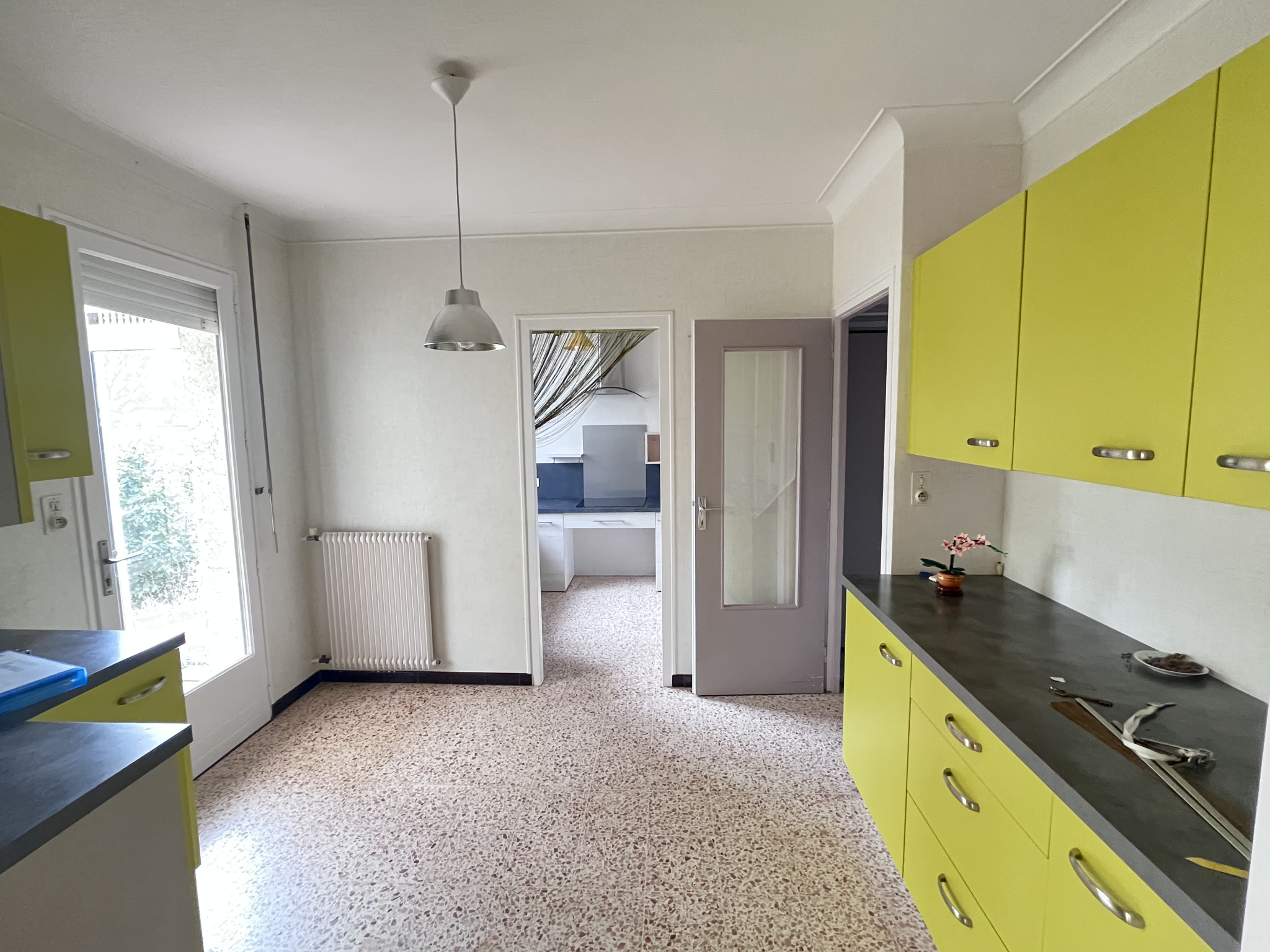 au rez de chaussée : une pièce de vie, une cuisine, une terrasse sans vis à vis exposée sud - ouest,