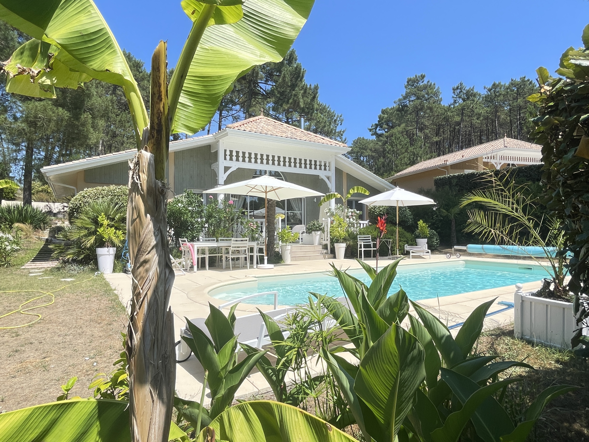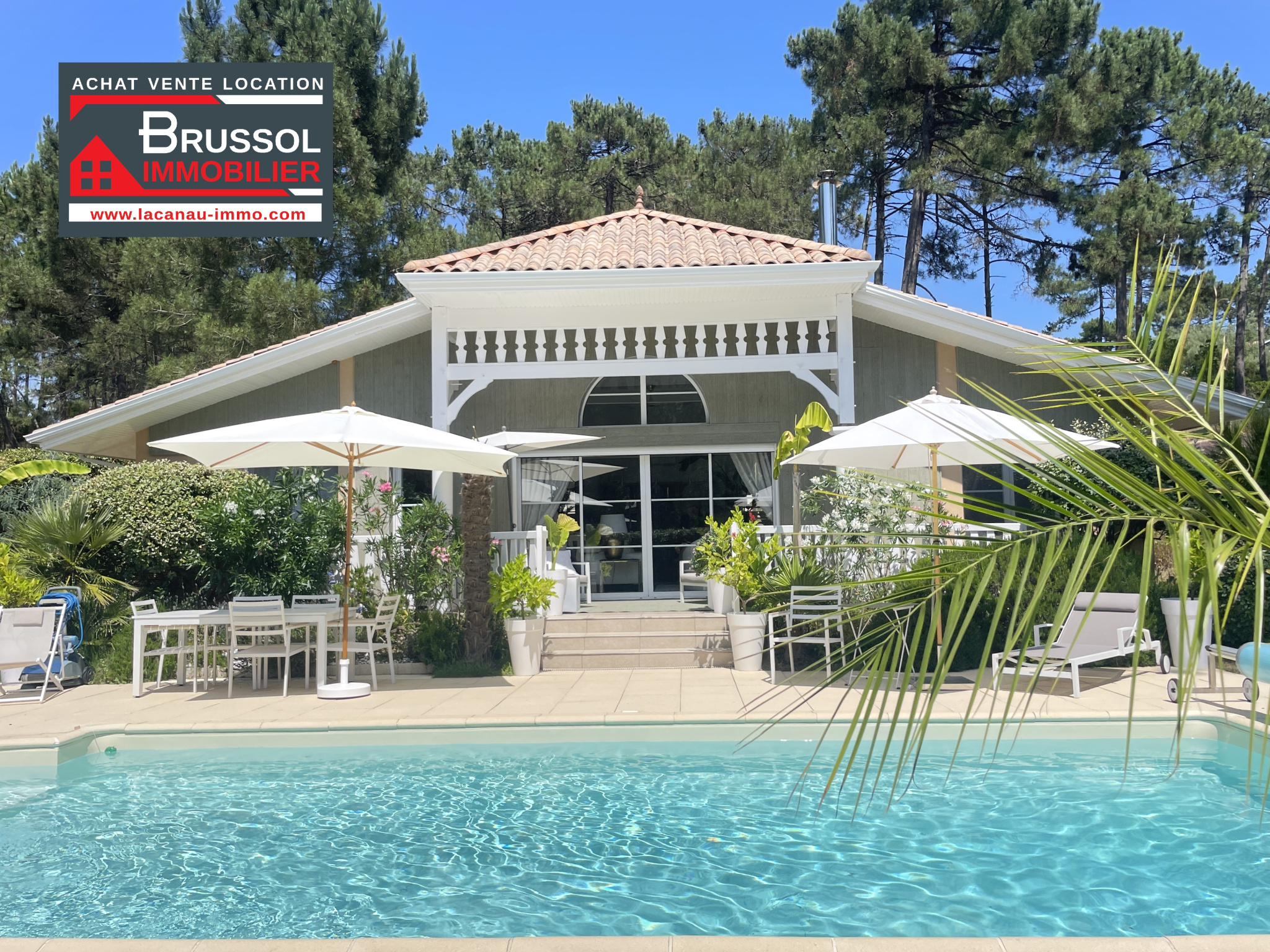 A vendre superbe maison luxueuse de 152 m2, de plain- pied, située à seulement 800 m de la plage SUD et du centre de Lacanau Océan, avec une belle parcelle de terrain.