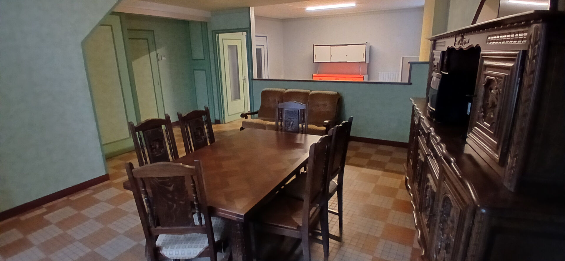 Au rez-de-chaussée : cuisine, petite véranda, salle d'eau, salon et séjour.