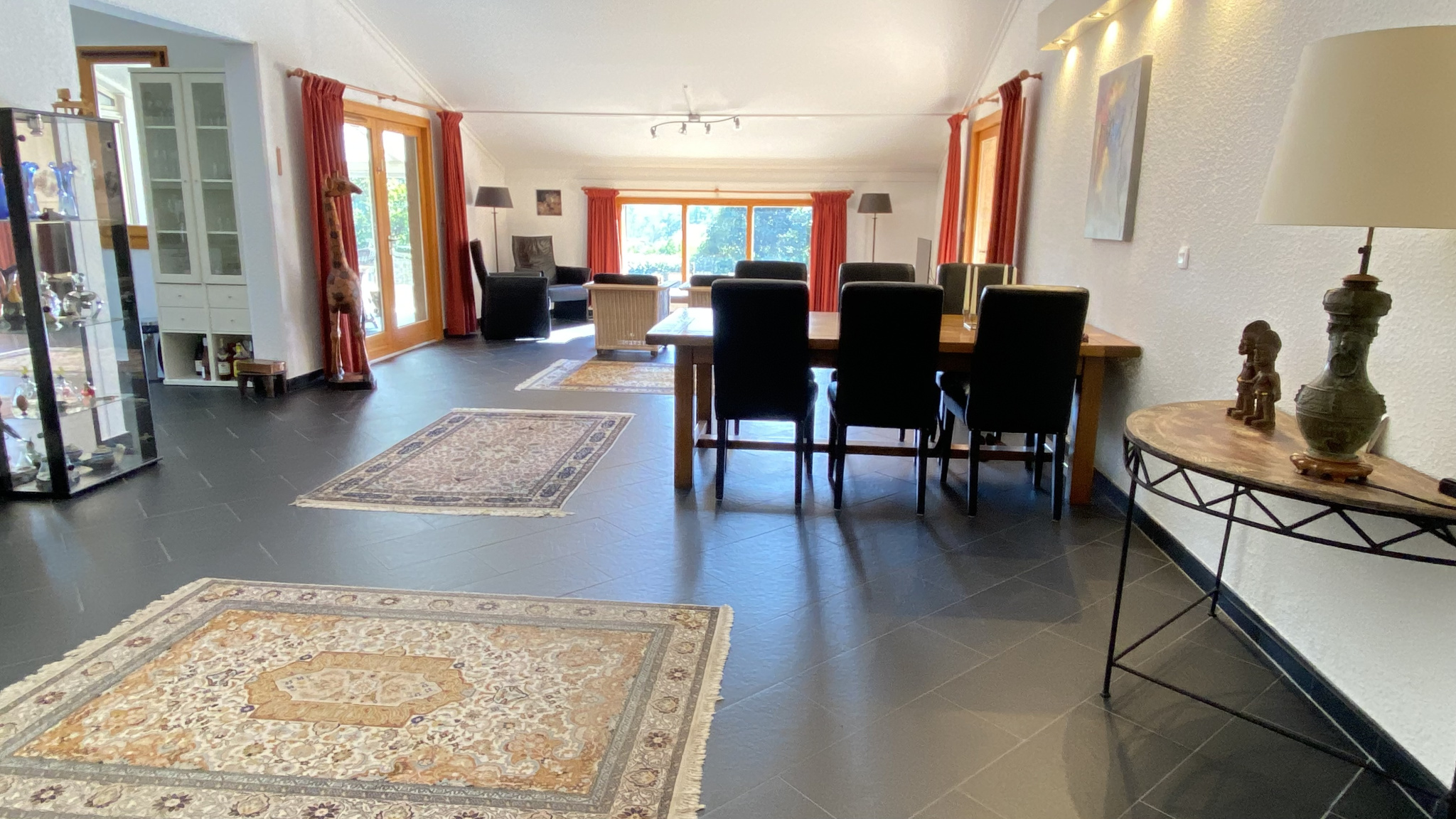 Grande pièce à vivre de 70 m2 avec poele à bois, cellier/buanderie. 4 chambres, salle de bain avec douche italienne et double vasques.