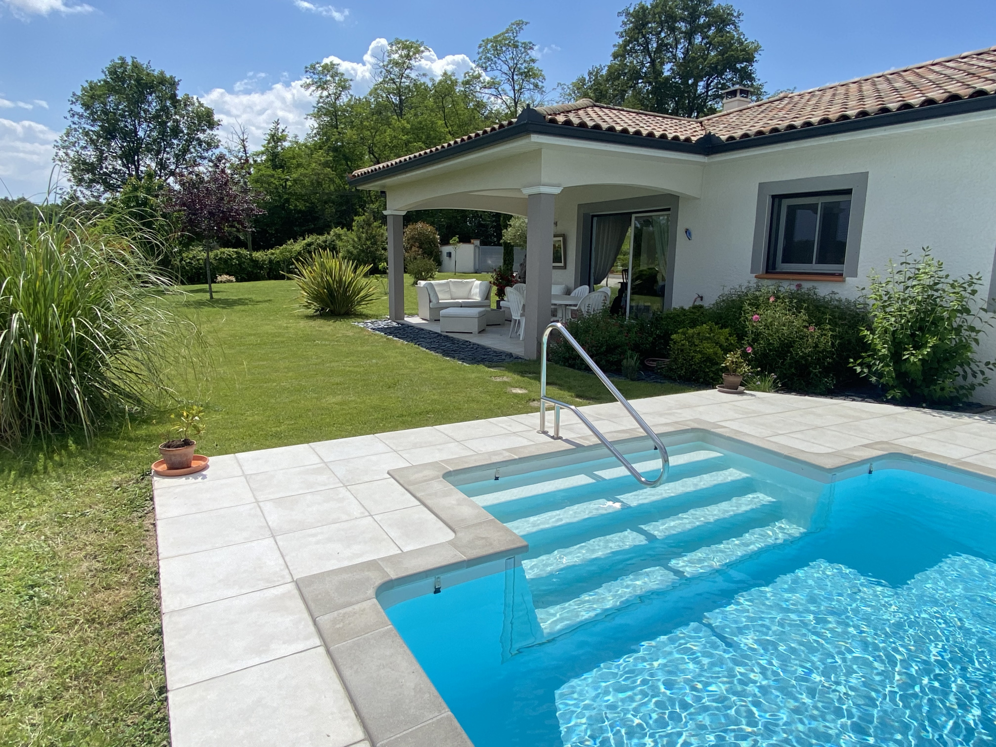 LOMBEZ 10MNS environ Karine LEVADOUX vous propose dans un cadre paisible et verdoyant, une magnifique villa de 177m2 habitables avec piscine, alliant charme , confort et équipements de qualité.