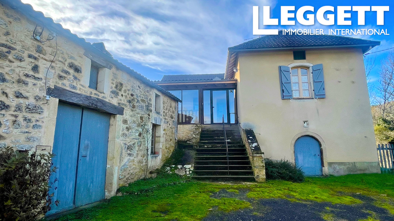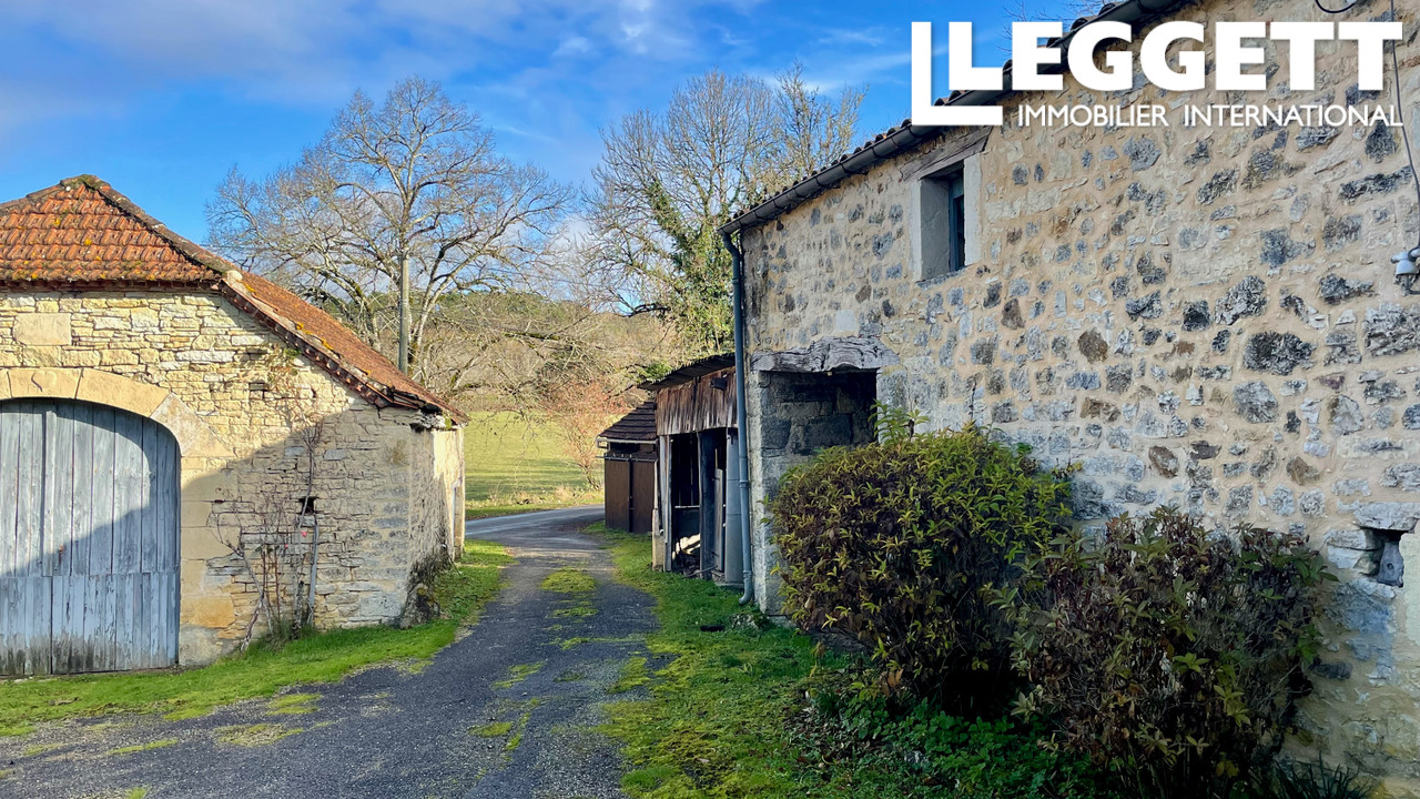A41866FEV46 - Ferme habitable à vendre dans le Lot, nécessitant des travaux de rénovation et offrant un fort potentiel. Terrain de 2,5 hectares avec prairies, bois, granges en pierre et nombreuses dépendances. Environnement rural calme à proximité du village d...
