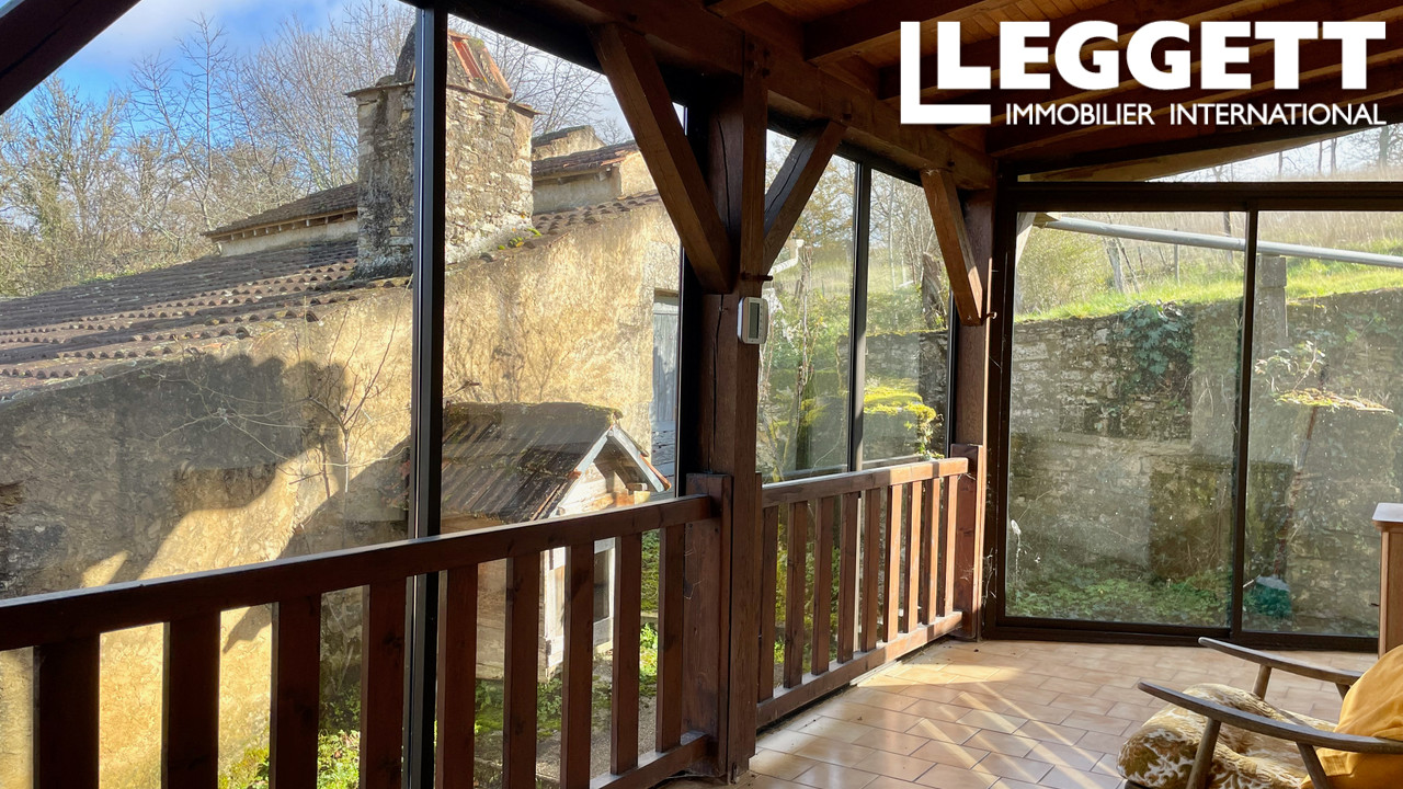 A35320SNM46 - Près de la ville historique de Castelnau-Montratier, cette maison charmante se trouve sur une pente avec une grande terrasse orientée au sud offrant de superbes vues. Elle dispose d'une véranda, d'un étang et d'un jardin de 6400 m²...