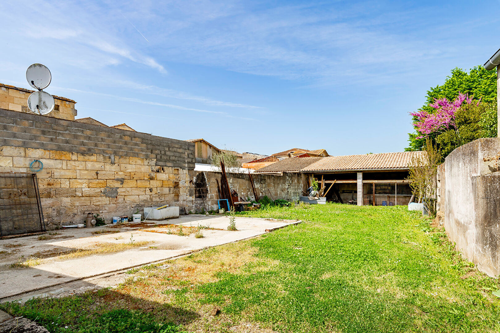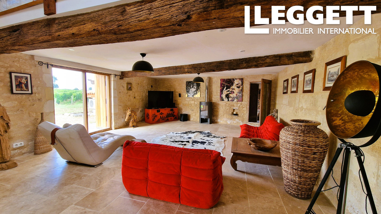 A41547SAG33 - Superbe propriété en pierre entièrement rénovée, située au coeur du vignoble de Lussac, composée de trois maisons mitoyennes (192 m², 176 m² et 124 m²), idéale pour une grande famille, un projet intergénérationnel ou une activité de gîtes. Avec u...
